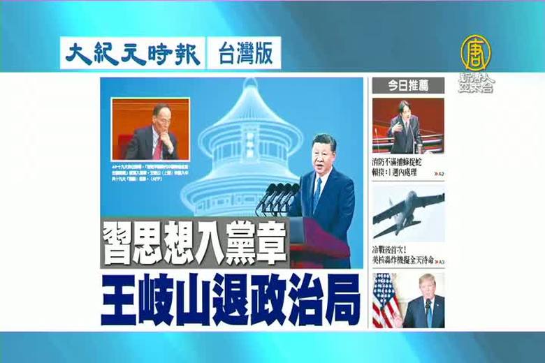 中共十九大已經結束,從官方名單中可以看出,王岐山已經確定退出政治局常委。不過,分析認為,接掌中紀委一把手的,還會是習近平的親信,加上「習思想」已經通過決議寫入黨章,在這種情況下,習當局接下來的反腐動作,也備受外界關注。 //asset3.ntdtv.com.tw/public/uploads/assets/2017/10/25/2017-10-25-59f082ff152cc.mp4 中共十九大|王岐山|退常|習思想|入黨章|反黨2017-10-25 20:23:57