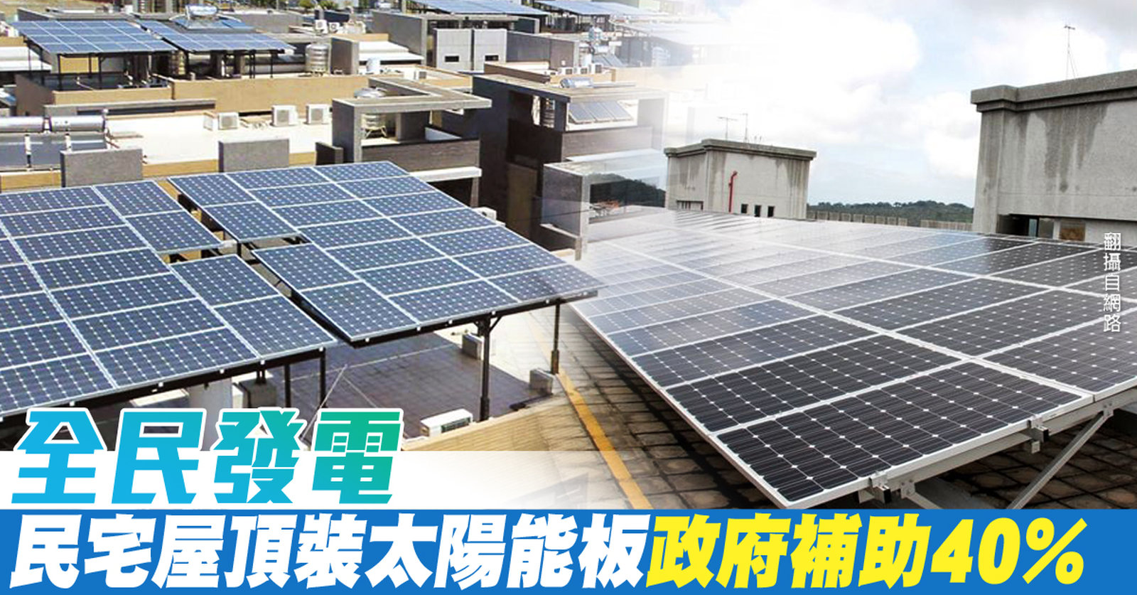 全民發電 民宅屋頂裝太陽能板政府補助40%