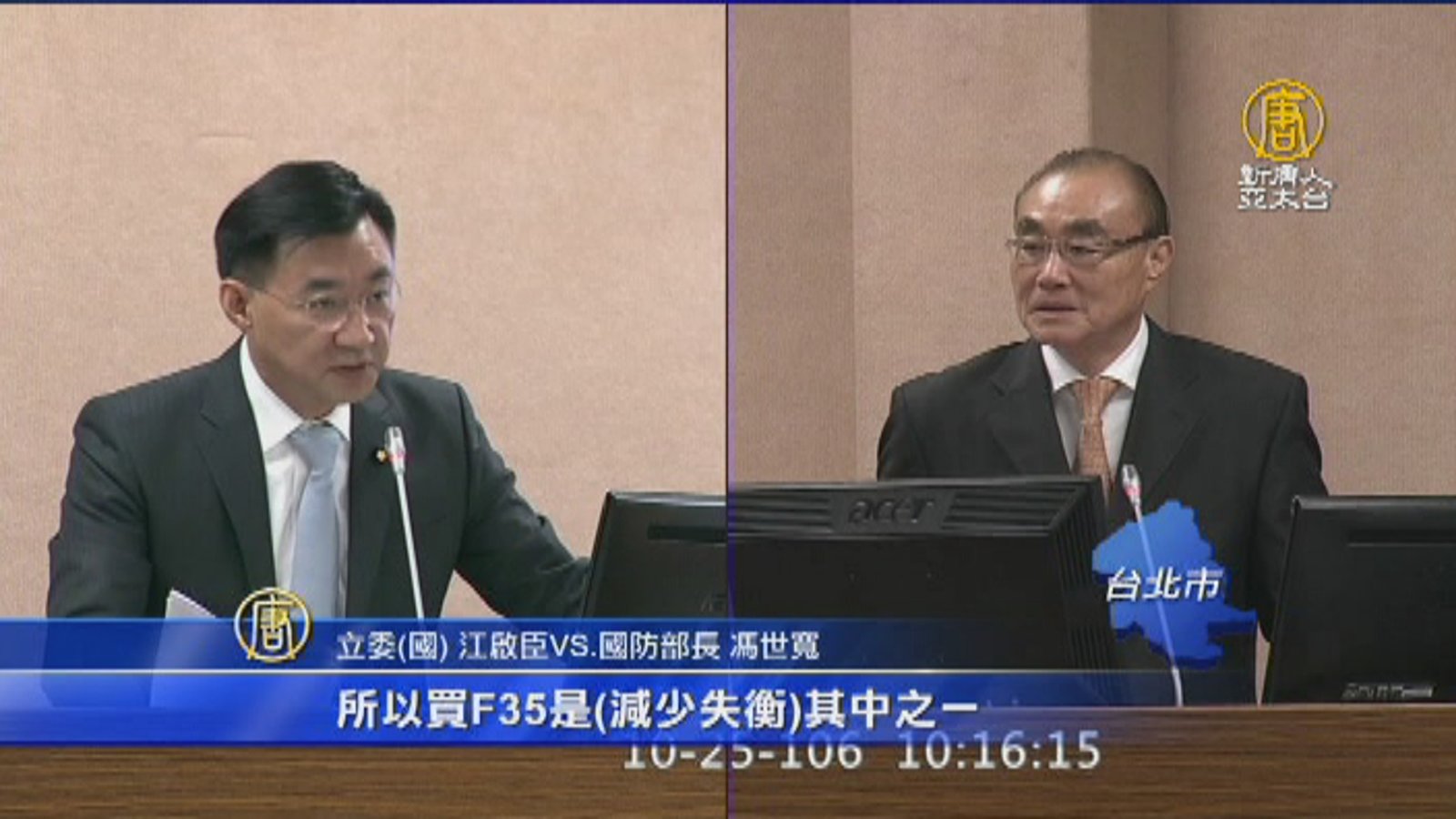 國防部長馮世寬立法院備詢,針對兩岸軍力失衡,馮世寬說,向美國購買F35是選項之一,只是擺在眼前,慶富公司承包的獵雷艦案牽扯 超貸弊案,越演越烈,軍方已經下達通牒,明年1月興達港廠房沒有完工,就達到解約標準! //asset2.ntdtv.com.tw/public/uploads/assets/2017/10/25/2017-10-25-59f0841b260d6.mp4 馮世寬|軍購|F35|獵雷艦|行憲紀念日|慶富2017-10-25 20:27:52