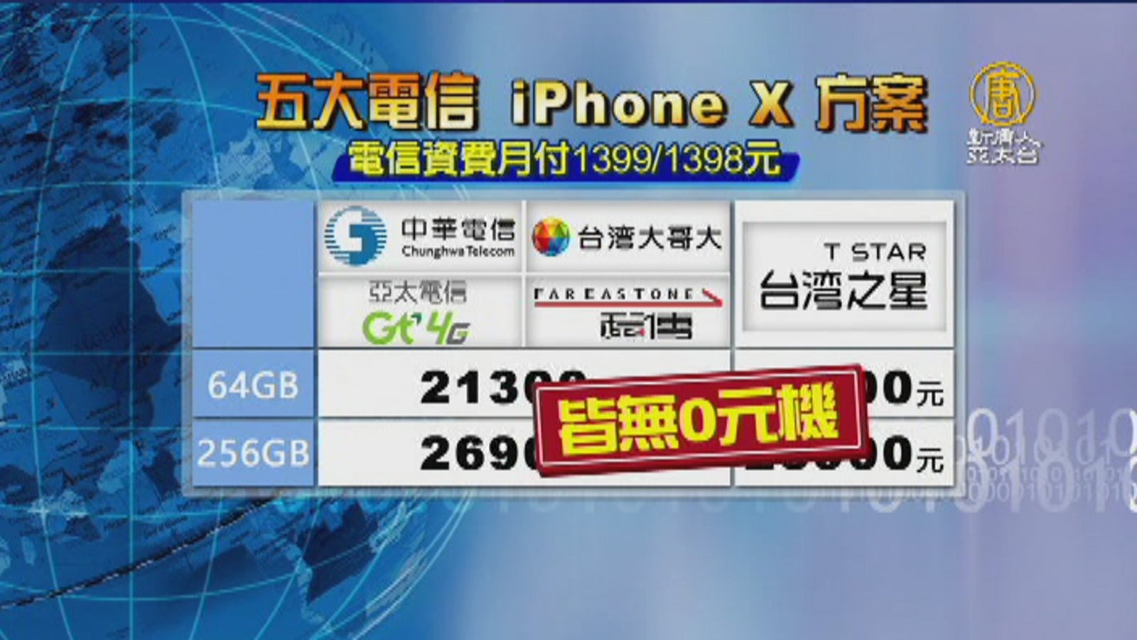 iPhone X即將開賣,各大電信的最新資費方案出爐了!不過因為iPhone X原價一支就要破3萬元,是史上新高,五大電信最新方案出爐,高額的資費方案1399元甚至2699元,都沒有零元機,但電信業者仍信心十足,因為推估第一波到貨量只有5萬到10萬支,還是可能出現排隊搶購潮! //asset3.ntdtv.com.tw/public/uploads/assets/2017/10/26/2017-10-26-59f1df25858d6.mp4 iPhoneX|資費方案|五大電信|零元手機|蘋果|蘋果手機|電信業2017-10-26 21:10:06