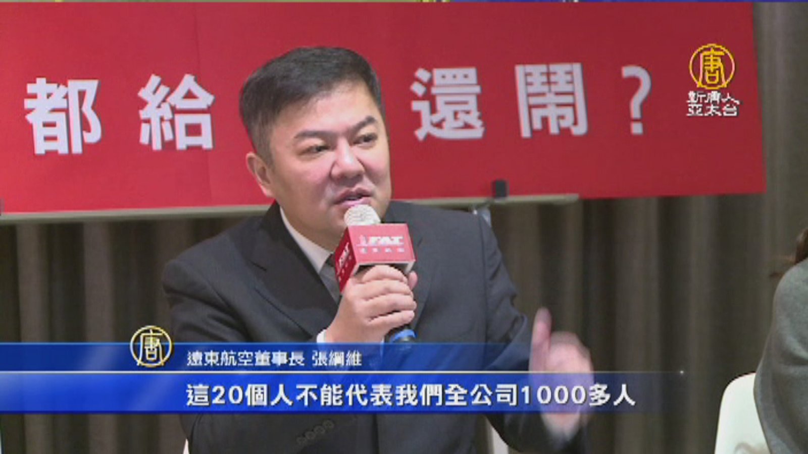 再來看到,遠航的勞資爭議,遠航企業工會日前質疑,遠航解雇的空服員,都是工會裡的幹部或是會員,遠航董事長張綱維今天(31日)則親上火線回應,哪些人是工會成員,他根本都搞不清楚。 //asset2.ntdtv.com.tw/public/uploads/assets/2017/10/31/2017-10-31-59f8722e05486.mp4 遠東航空|遠航企業|遠航|工會2017-10-31 20:49:31