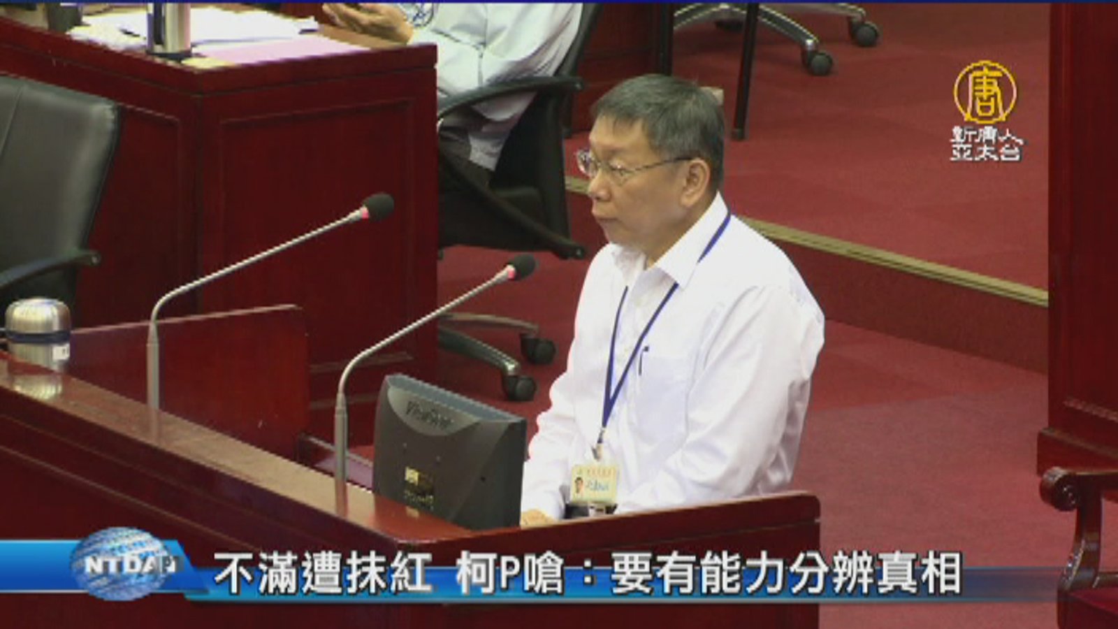 台北市長柯文哲,3日到市議會總質詢,市議員簡舒培拿出兩岸政策協會的民調,質疑柯文哲的政治立場,由墨綠轉成紅、白色力量被中國收編,柯文哲表示,做為一個知識份子,要有能力分辨真相。 //asset2.ntdtv.com.tw/public/uploads/assets/2017/11/03/2017-11-03-59fc6adc60ef6.mp4 柯文哲|台北市|市議會|總質詢|統戰|中國2017-11-03 21:11:02