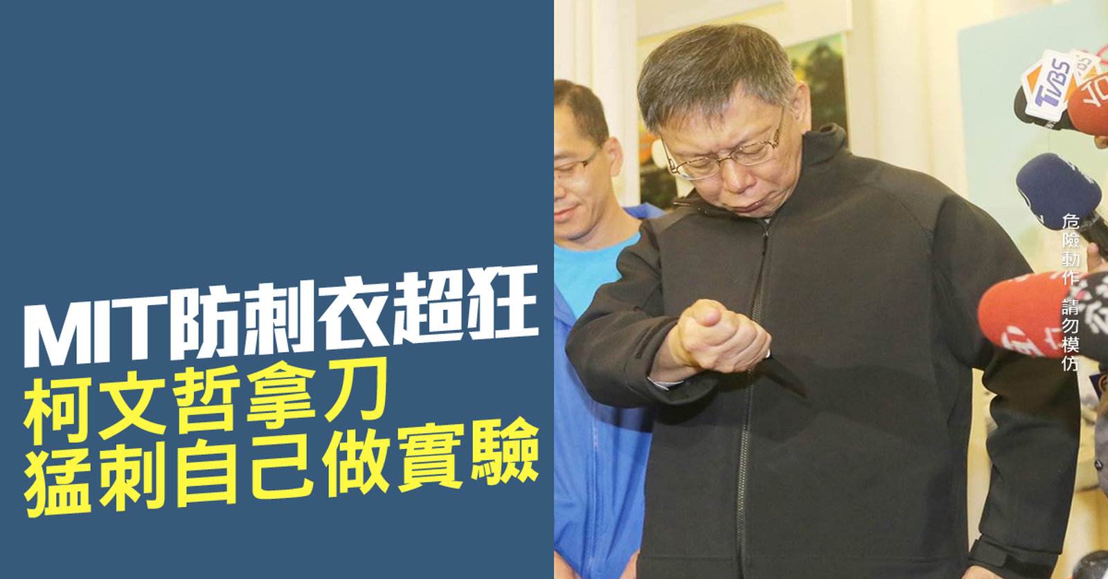 MIT防刺衣超狂 柯文哲拿刀猛刺自己做實驗