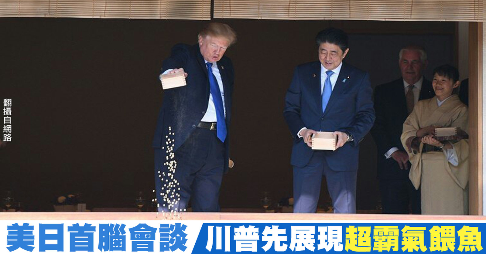 再來看到,川普訪日行程,今天進入第2天,川普在會見美日企業人士時,如外界預期,聚焦強調:要實現公平貿易。而另外,川普與日本首相安倍,今天也一起在迎賓館餵鯉魚,川普餵魚的方式超霸氣,因為,川普一口氣,就把一大把的飼料,全部都倒進池子裡。 //asset2.ntdtv.com.tw/public/uploads/assets/2017/11/06/2017-11-06-5a00633448338.mp4 川普亞洲行|日本|貿易逆差2017-11-06 21:27:23