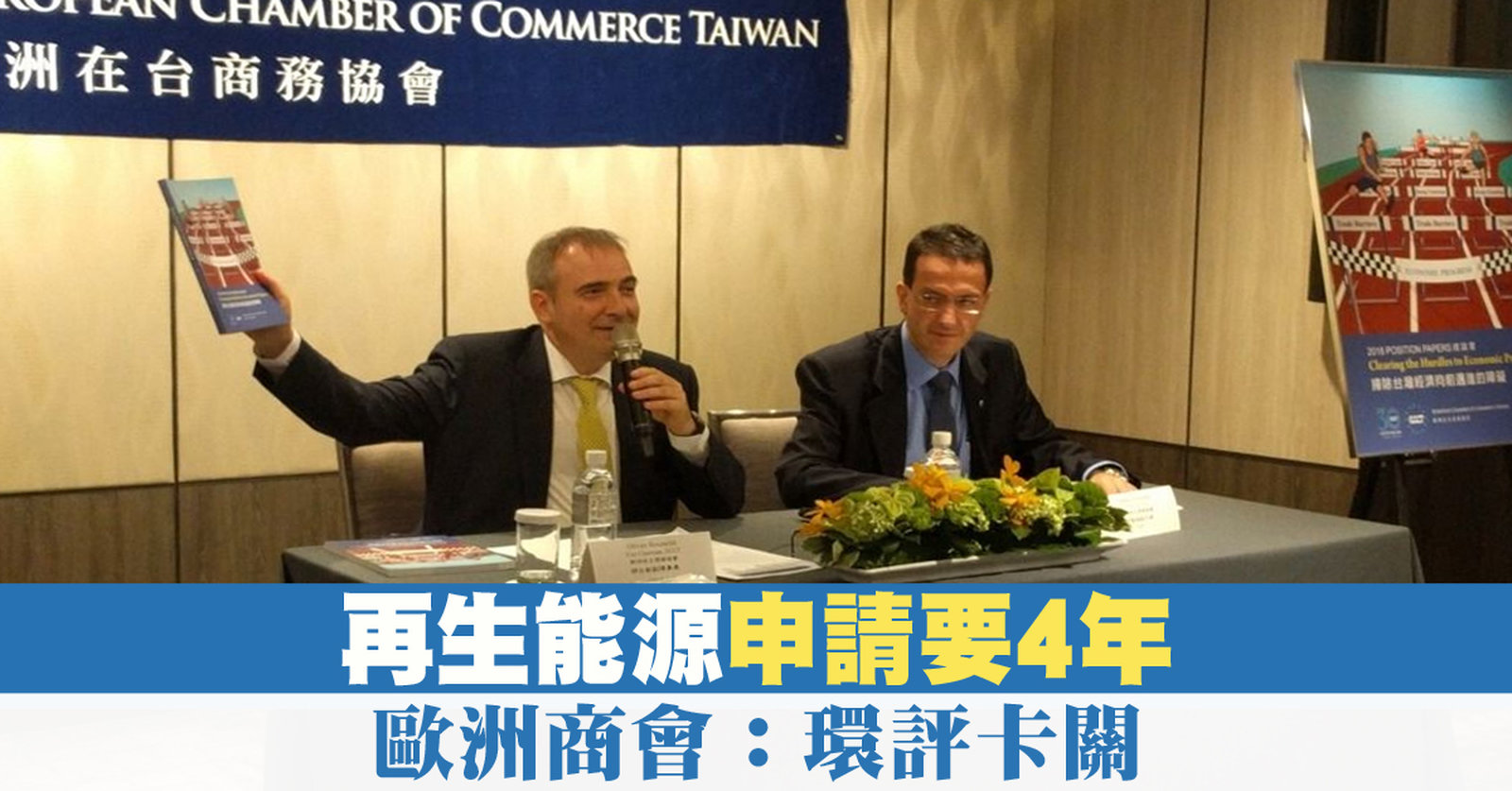 再來看到,歐洲商會(ECCT)發布「2018年建議書」,除了針對一例一休做出建議,商會也指出,不少企業在台灣投資再生能源,遭遇環評卡關,往往耗費四年以上,恐怕影響外商的 投資意願。 //asset1.ntdtv.com.tw/public/uploads/assets/2017/11/15/2017-11-15-5a0c3397c2325.mp4 風力發電|再生能源|歐洲商會|白皮書|陳美玲2017-11-15 20:27:57