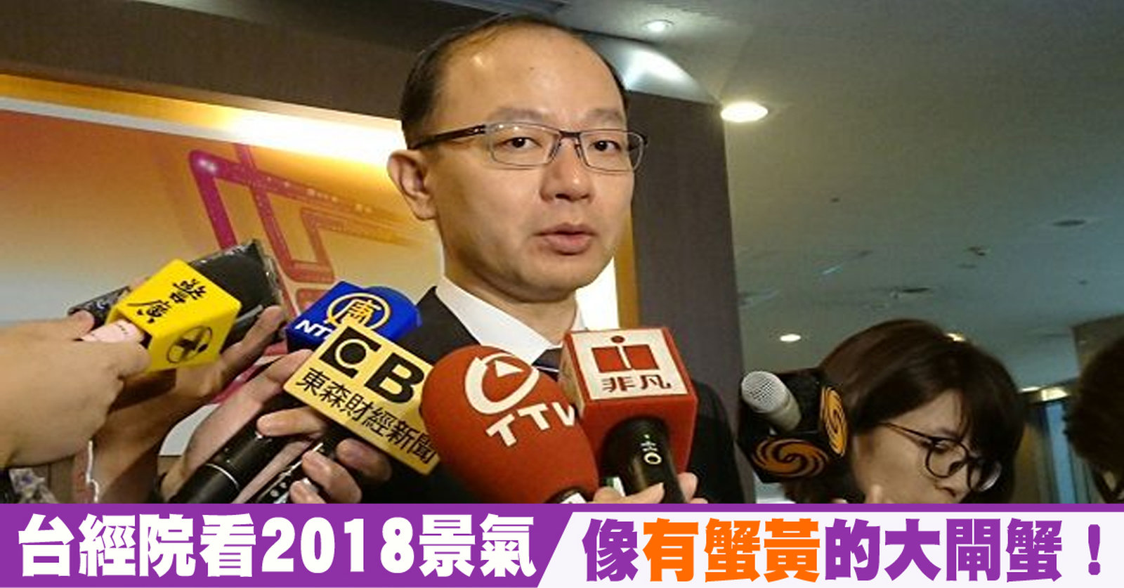 再來關心,明年,2018年的景氣,究竟如何?台灣經濟研究院,今天公布明年景氣預測展望,預測雖然低於今年的2.5%,不過仍有2.30%的水準,專家形容,明年景氣,就像有蟹黃的大閘蟹。 //asset2.ntdtv.com.tw/public/uploads/assets/2017/11/15/2017-11-15-5a0c33d4e28ff.mp4 台經院|2018|GDP|孫明德|林建甫|經濟展望2017-11-15 20:30:26
