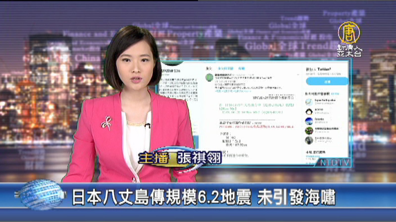 歡迎回來。繼昨天南韓發生有史以來規模第二大的地震後,今天傍晚日本也傳出地震。台灣時間今天下午5點43分,東京東南方外海的八丈島,發生芮氏規模6.2地震,深度僅20公里,屬於淺層地震,在東京和千葉部分地區都有震感,不過並沒有引發海嘯。 //asset1.ntdtv.com.tw/public/uploads/assets/2017/11/13/2017-11-13-5a0d91ed8256a.mp4 地震|日本|東京|八丈島2017-11-16 20:33:17