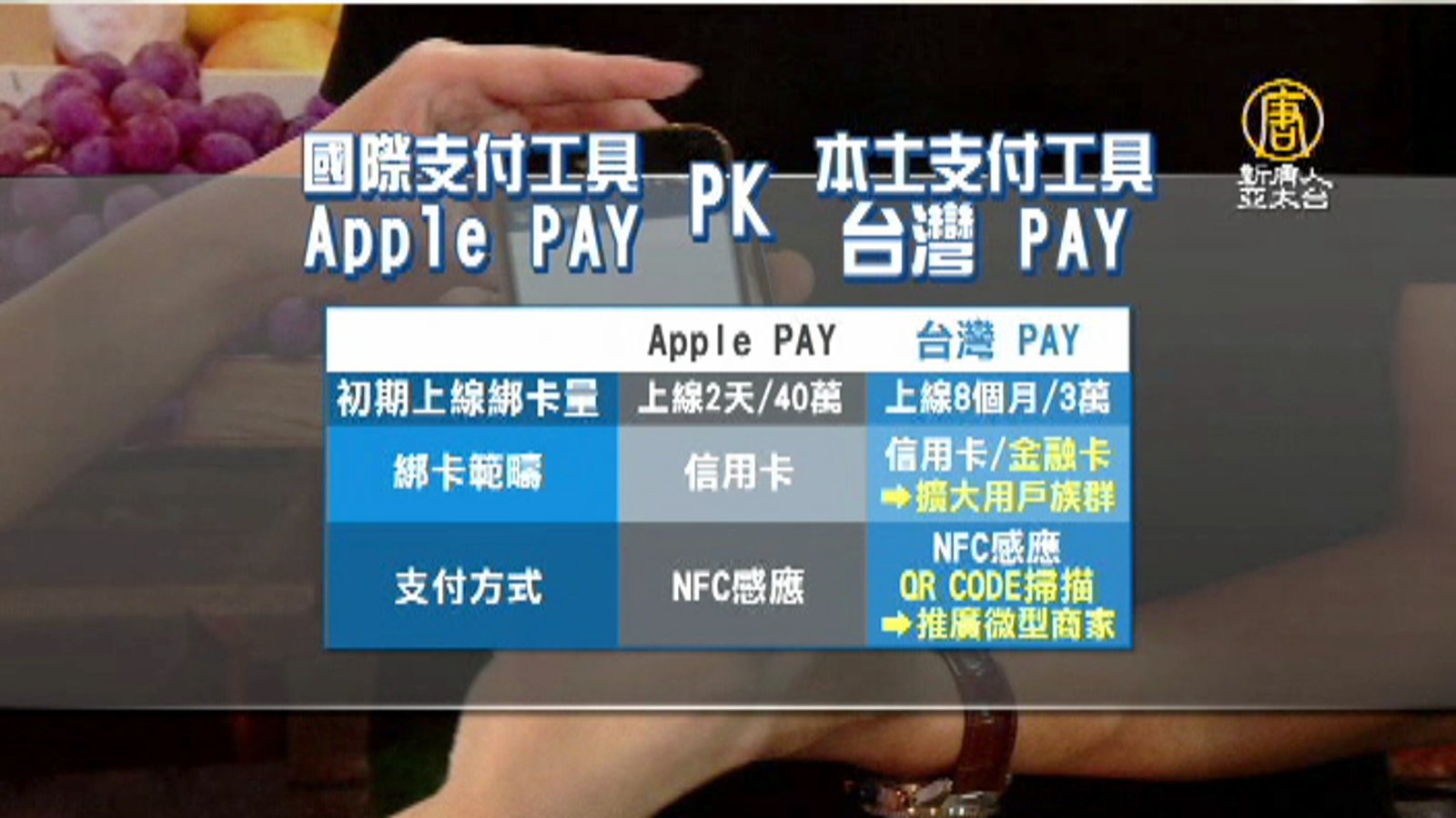 不讓國際支付工具專美於前,台灣本土支付工具t wallet,舉辦記者會,宣布改名為台灣 Pay,功能再升級不只綁定信用卡,就連金融卡也能使用,要擴大使用族群。 //asset1.ntdtv.com.tw/public/uploads/assets/2017/11/16/2017-11-16-5a0d89af19802.mp4 台灣PAY|Apple|Pay|行動支付|國際支付工具2017-11-23 11:34:37