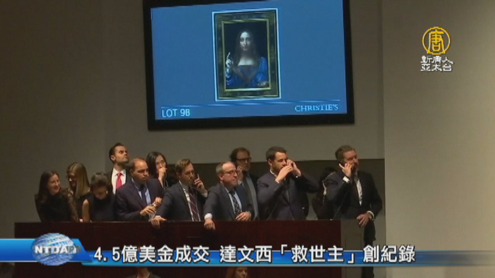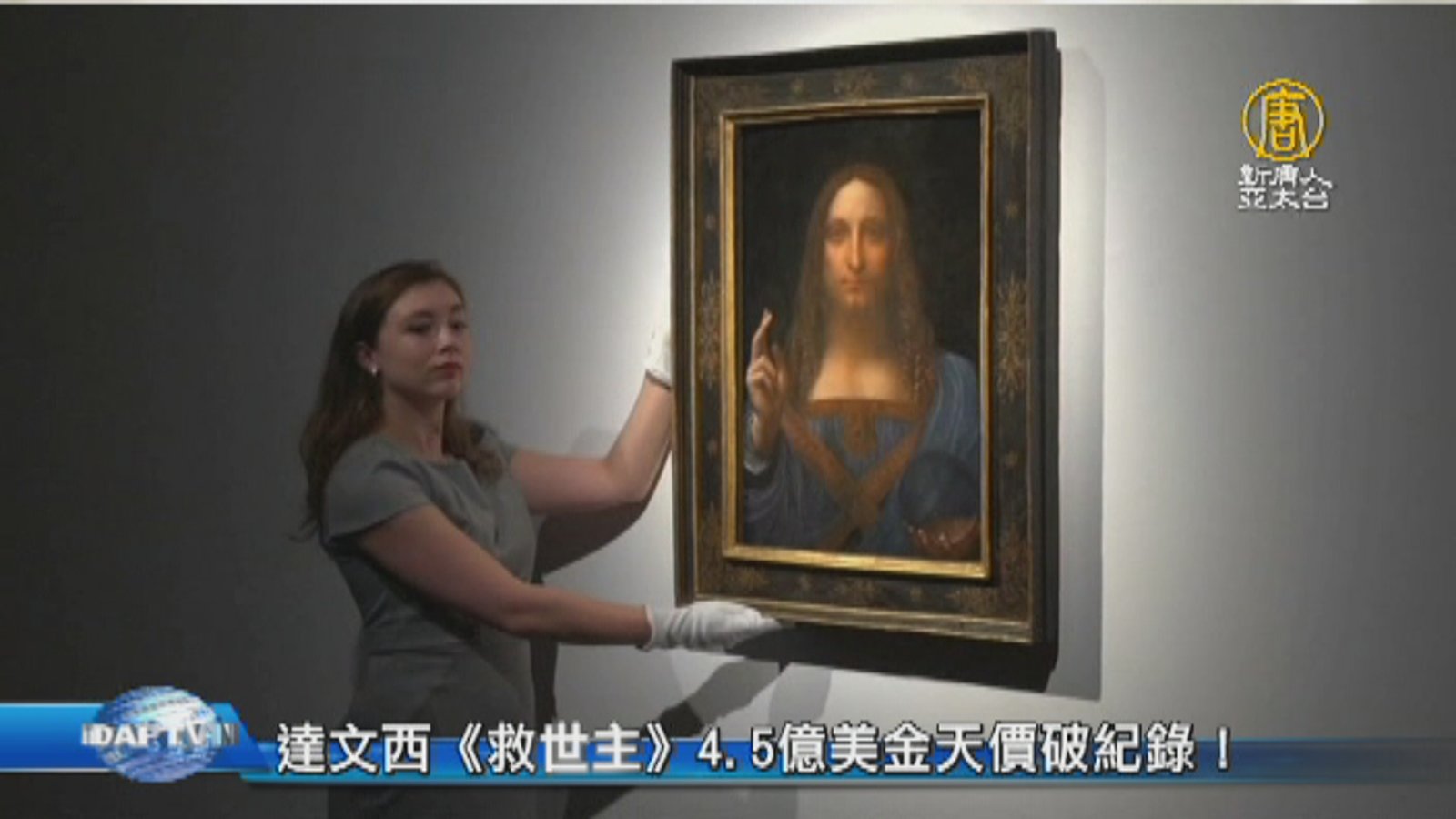 文藝復興時期大師達文西的畫作《救世主》,在紐約以四億美金的天價成交,約台幣136億,創下全球藝術品拍賣的新紀錄。 //asset2.ntdtv.com.tw/public/uploads/assets/2017/11/17/2017-11-17-5a0ed97839beb.mp4 達文西|救世主|拍賣|蒙娜麗莎2017-11-17 20:41:56