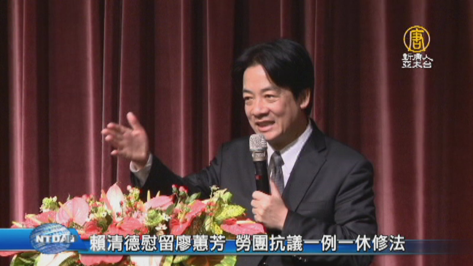 再來看到,立法院今天初審《勞動基準法》修法草案,引發勞團抗議,行政院長賴清德表示,良好的勞資關係,不是建立在對立,政府是要替勞資雙方,創造雙贏。 //asset2.ntdtv.com.tw/public/uploads/assets/2017/11/20/2017-11-20-5a12c61aeb4ed.mp4 一例一休|賴清德|林美珠|廖蕙芳|勞動部|抗議2017-11-20 20:08:34