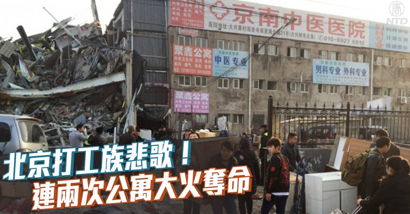 北京巿大興區西紅門鎮新建村「聚福緣公寓」11月18號晚上發生大火,造成至少19人死亡、8人受傷。事發後,當局封鎖現場和網上消息,記者拍照也被要求刪除。當地村民透露,死者都是外來的打工者,疑似用電取暖著火。 //asset2.ntdtv.com.tw/public/uploads/assets/2017/11/21/2017-11-21-5a1429a0b3b3c.mp4 北京|大興區|聚福緣公寓|火災|封鎖現場消息|外來打工者2017-11-21 21:46:52