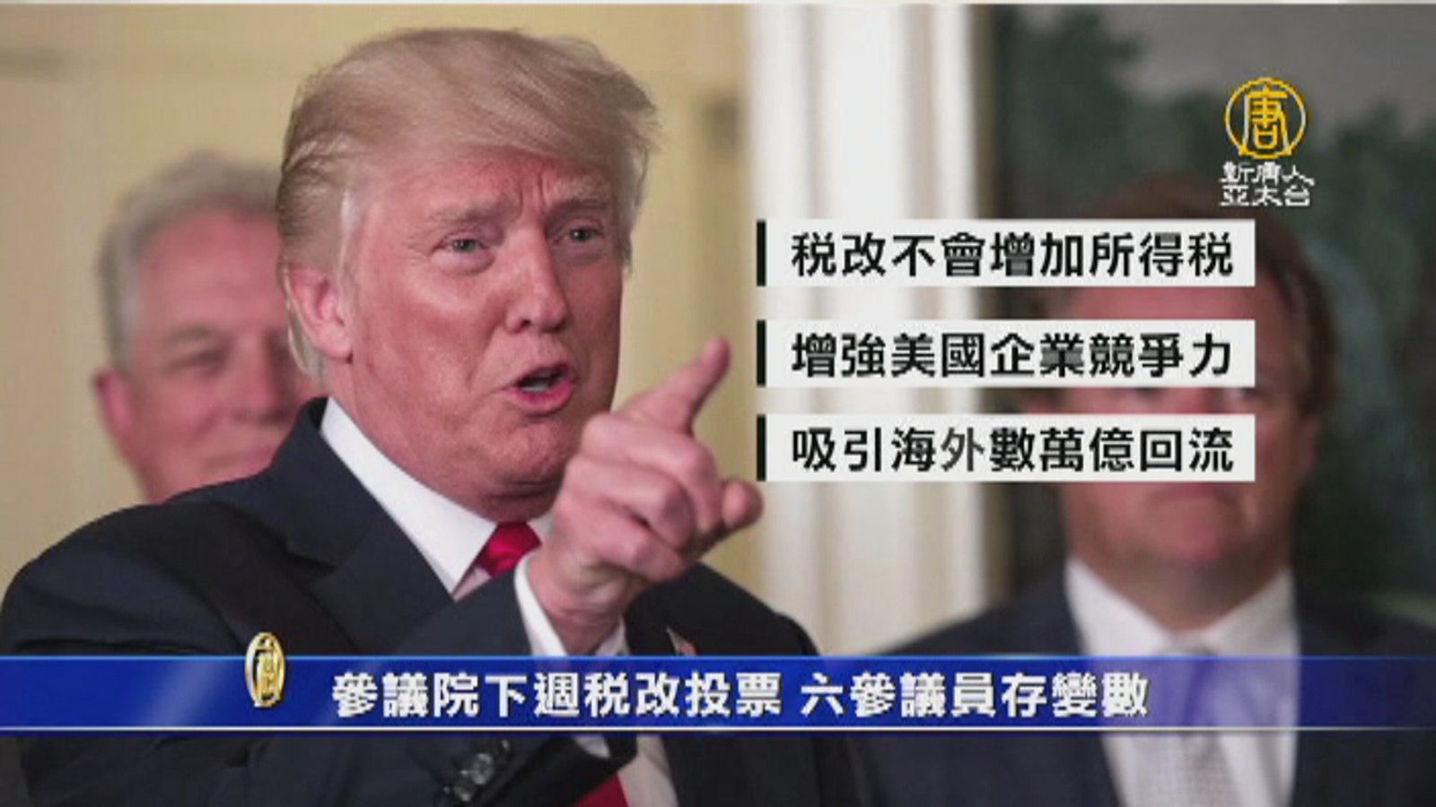 再來看到,美國參議院的稅改投票,就要在下週登場。不過,共和黨在參院只有52席,黨內最多只能丟掉兩票,但目前有六名共和黨參議員,還存在變數。 //asset1.ntdtv.com.tw/public/uploads/assets/2017/11/21/2017-11-21-5a141fd369d8b.mp4 美國參議院|稅改投票|共和黨參議員|變數2017-11-21 20:42:01
