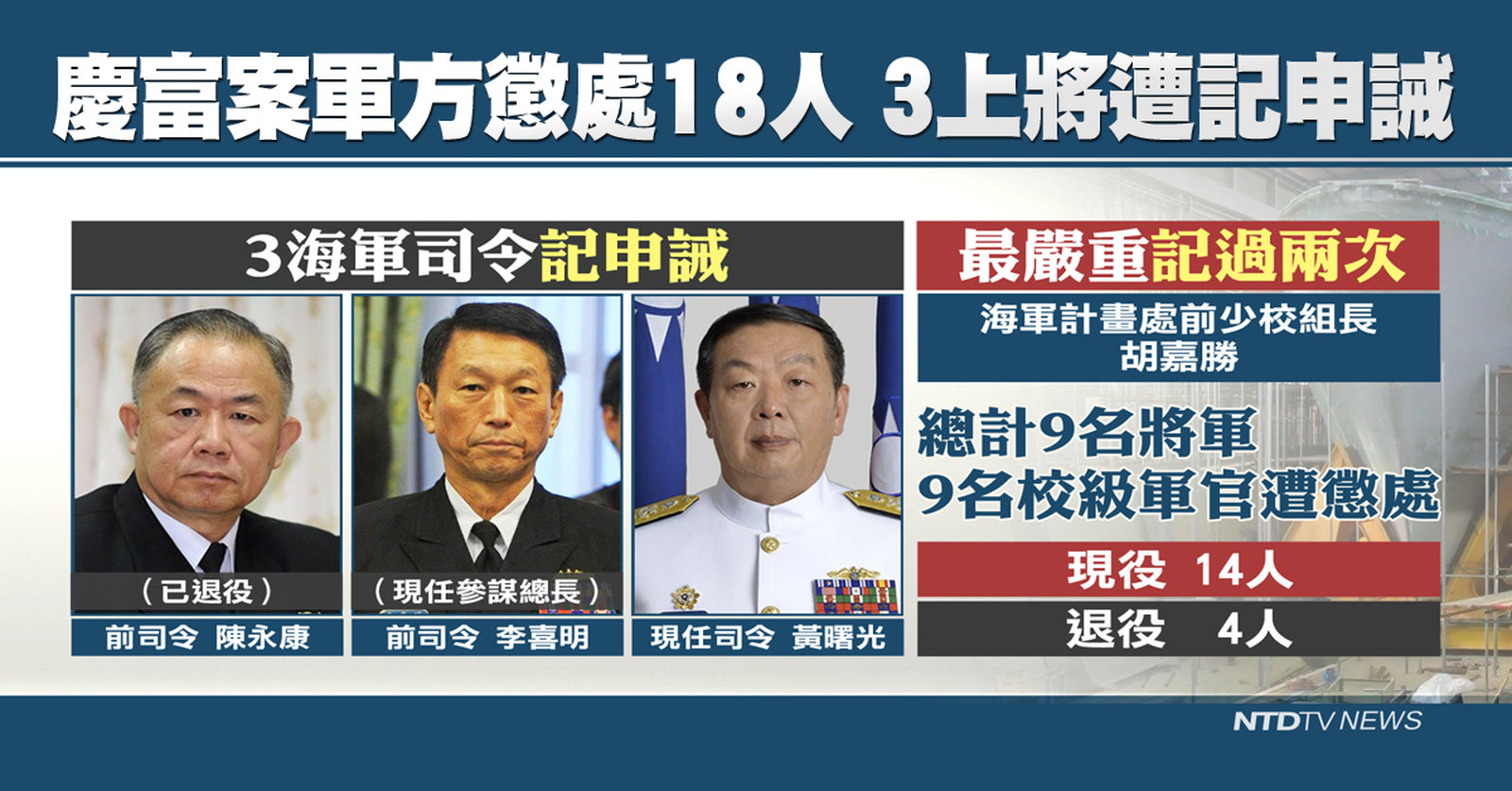 慶富案軍方懲處18人 3上將遭記申誡