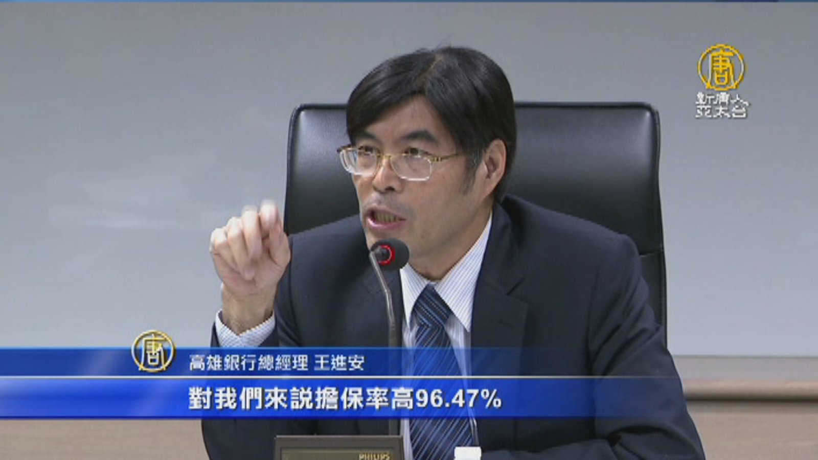 繼續來看,現在有國民黨立委質疑,慶富案的205億聯貸案,公股銀行之所以會加入,關鍵在於2013年高雄銀行,提供了17.5億元的履約保證,不過,高雄銀行昨天也開記者會澄清,他們要求慶富履約保證的擔保率高達96%,今天,金管會主委顧立雄被問到時,也認為,沒有太大的問題。 //asset1.ntdtv.com.tw/public/uploads/assets/2017/11/22/2017-11-22-5a1569daab2e9.mp4 慶富|獵雷艦|高雄銀行|顧立雄|賴清德2017-11-22 20:08:32