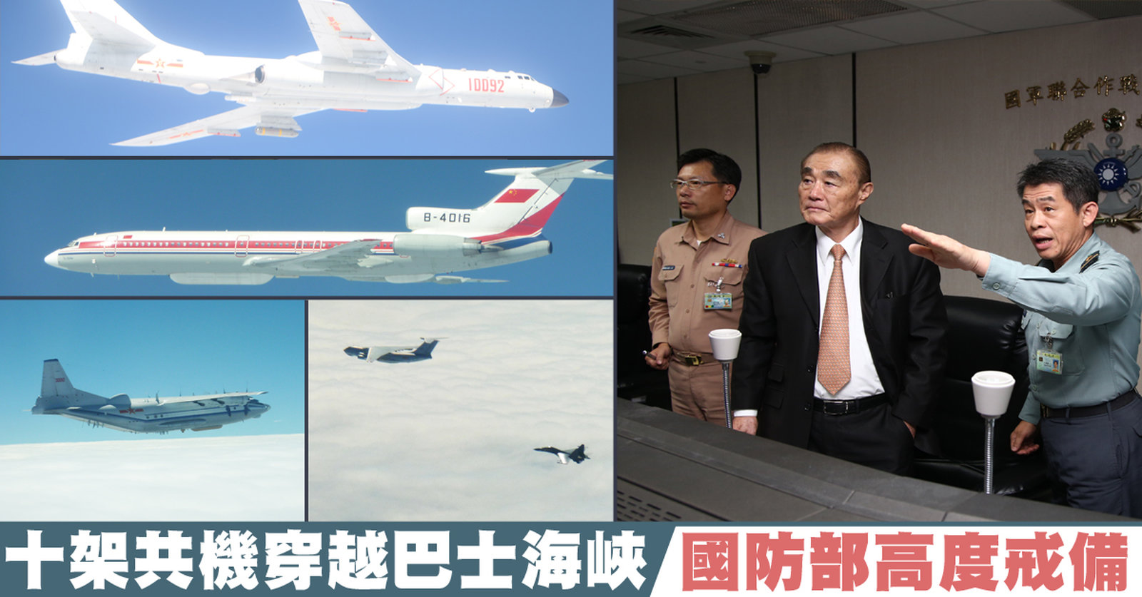 接著看到,中共軍方,今天(22日)派出多架軍機,飛經巴士海峽,包括轟炸機、電偵機與蘇愷30戰機和空中加油機,引起國防部的高度關注。部長馮世寬上午向總統蔡英文報告共軍動態,下午,也親自坐鎮聯合作戰指揮中心。 //asset1.ntdtv.com.tw/public/uploads/assets/2017/11/22/2017-11-22-5a156cfd6ffe6.mp4 共軍繞台|兩岸|國防|第一島鏈2017-11-22 20:25:18