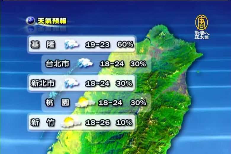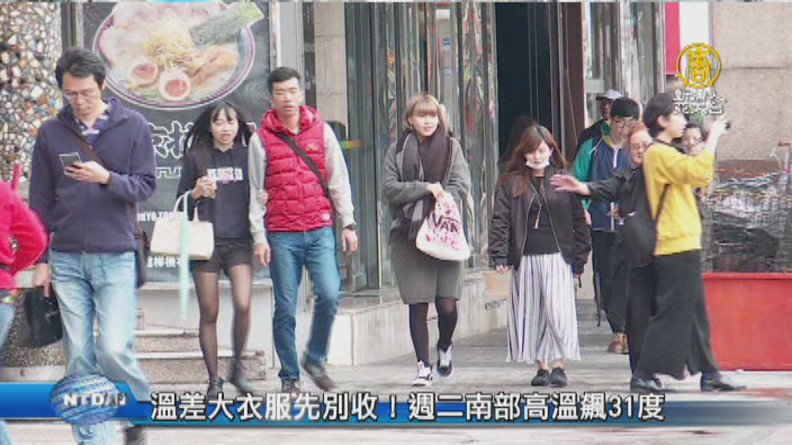 再來帶您關心天氣,周末兩天,北部天氣濕濕冷冷,不過要提醒您,夏天衣服可別急著收,中央氣象局表示,明天起水氣減少,週二到週四各地氣溫將大幅回升,南部高溫上看31度。但到週四晚上又有另一波東北季風南下,週五北部最低溫又下探18度,觀眾朋友要留意氣溫大幅變化。 //asset2.ntdtv.com.tw/public/uploads/assets/2017/11/26/2017-11-26-5a1aaf08efcdc.mp4 天氣預報|低溫|高溫2017-11-26 20:08:34