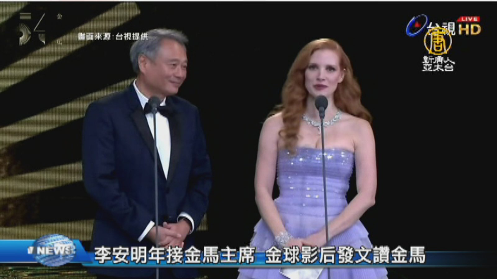 繼續來看到,國際名導李安,將擔任下屆金馬執委會主席,李安期許延續金馬獎公平開放傳統,本屆金馬獎,李安與金球獎影后潔西卡雀斯坦,合頒女主角獎,典禮過後,雀斯坦也在推特發文稱讚,金馬獎是華語電影中,最值得稱許的電影獎。 //asset3.ntdtv.com.tw/public/uploads/assets/2017/11/26/2017-11-26-5a1ab4b54ab65.mp4 金馬獎|李安|潔西卡雀斯坦|李淳2017-11-26 20:31:22