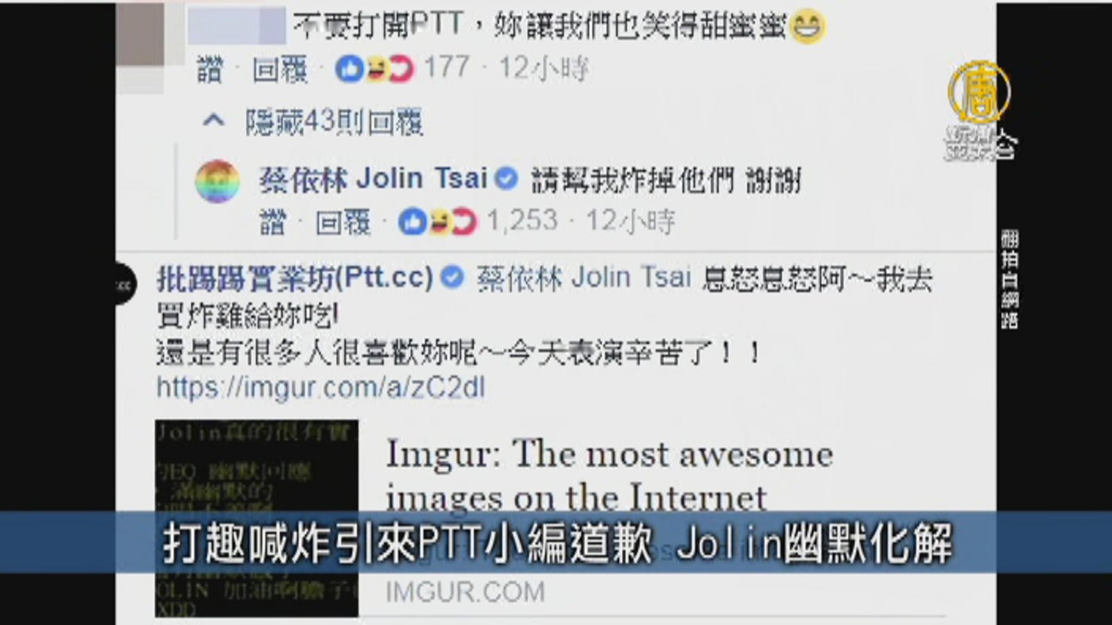 打趣喊炸引來PTT小編道歉 Jolin幽默化解|台灣速速看