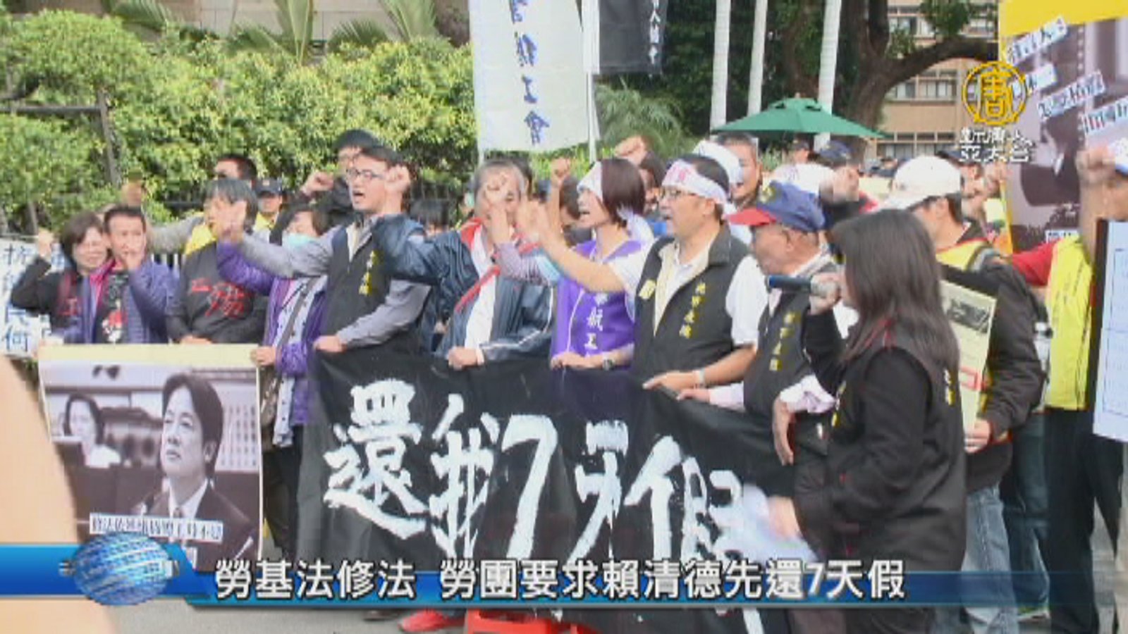 立法院審議「勞基法」一例一休修法,引發諸多爭議,勞工團體今天上午前往行政院,抗議勞基法修正草案已成惡法,要求政府先還勞工7天假,再來談修法。 //asset3.ntdtv.com.tw/public/uploads/assets/2017/11/27/2017-11-27-5a1c01af626e9.mp4 勞團|一例一休|七天假|勞基法|行政院|賴清德2017-11-27 20:12:02