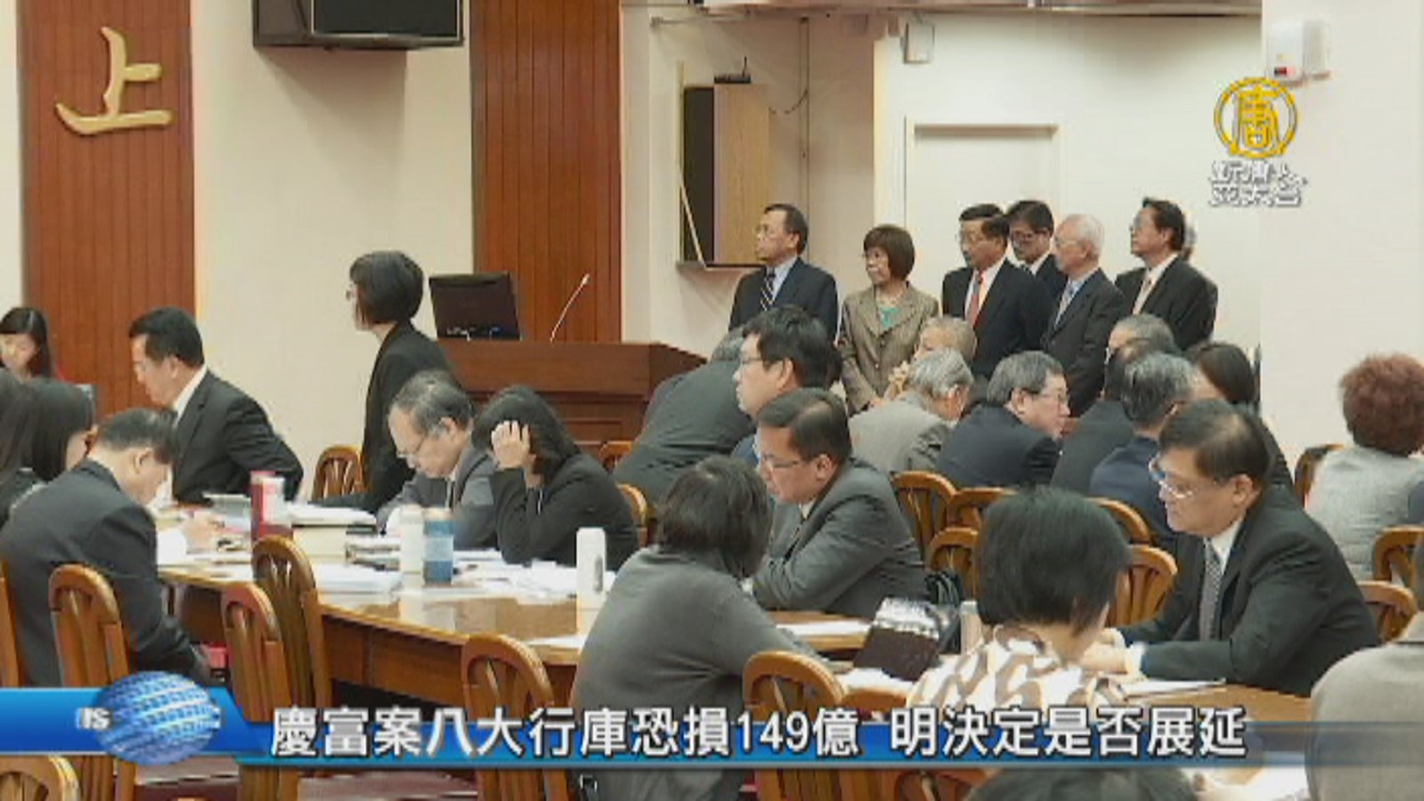 接著關心,財政部長與金管會主委,今天前往立法院,就慶富案提出報告,根據最新統計,慶富集團合計獵雷艦案、海洋聯貸、海巡署巡防艦等所有貸款,在八大行庫共有205億曝險部位,如果合約不繼續,八大行庫損失,總計將高達149億元。 //asset3.ntdtv.com.tw/public/uploads/assets/2017/11/27/2017-11-27-5a1c0173465bb.mp4 慶富|詐貸|聯貸|慶富集團|獵雷艦2017-11-27 20:10:13