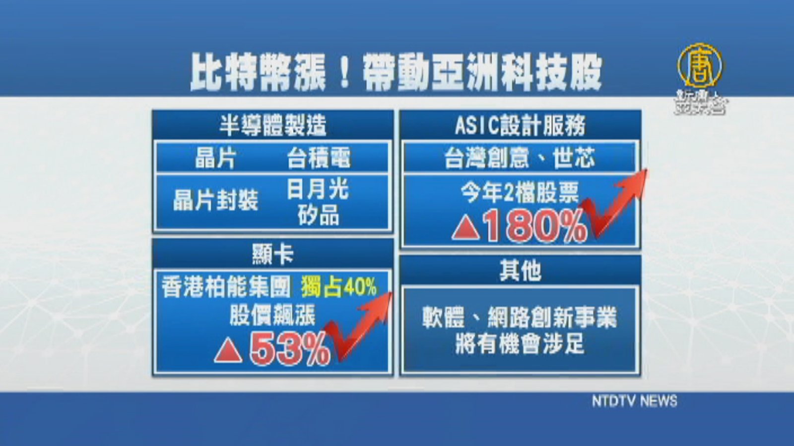 帶您看到。比特幣身價,再度水漲船高,隨著這種加密貨幣漲勢,增加龐大計算能力的需求,不少分析都指出,亞洲科技股,將成為主要受益者,台廠方面,包括台積電、日月光,也將受惠。不過我們也帶您思考,讓全世界追逐的比特幣,究竟是泡沫,還是飆漲的新浪潮? //asset3.ntdtv.com.tw/public/uploads/assets/2017/11/28/2017-11-28-5a1d54cd91fd0.mp4 比特幣|bitcoin|台積電|半導體|礦工2017-11-28 20:19:25