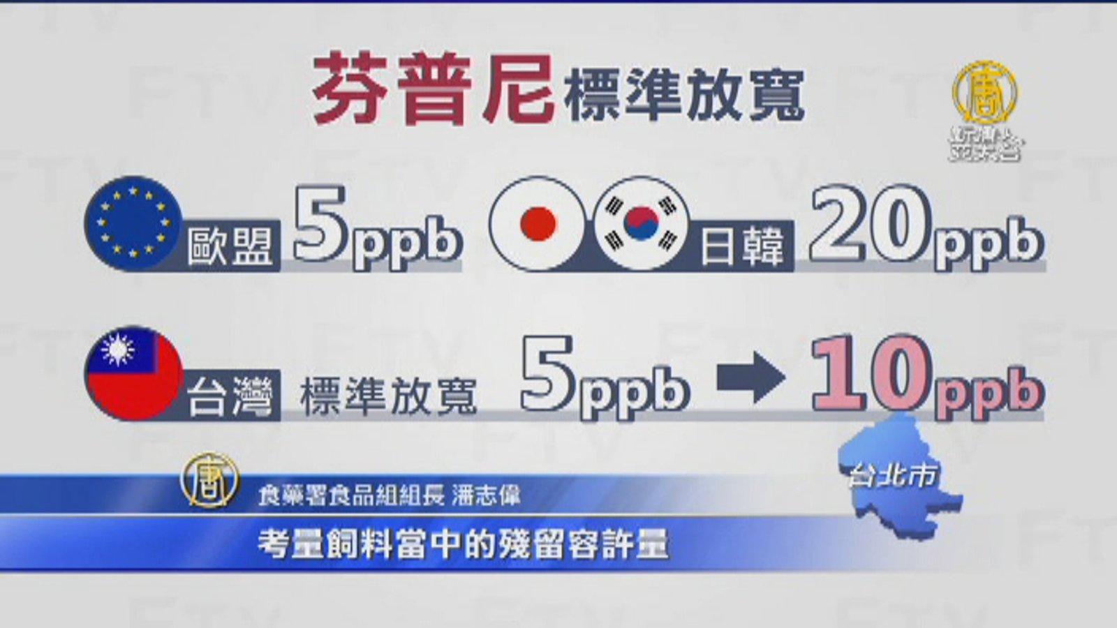 日前雞蛋檢出芬普尼,引發社會譁然,衛福部與農委會昨天召開聯席會議,經過近4小時討論,決議禽蛋殘留量訂為10ppb,比現行檢驗極限值的5ppb及歐盟規範寬鬆,食藥署強調,這在合理範圍內,但仍有藍營立委痛批,是在和人民作對。 //asset2.ntdtv.com.tw/public/uploads/assets/2017/11/28/2017-11-28-5a1d631c070c5.mp4 雞蛋|芬普尼|食藥署|食安2017-11-28 21:20:15