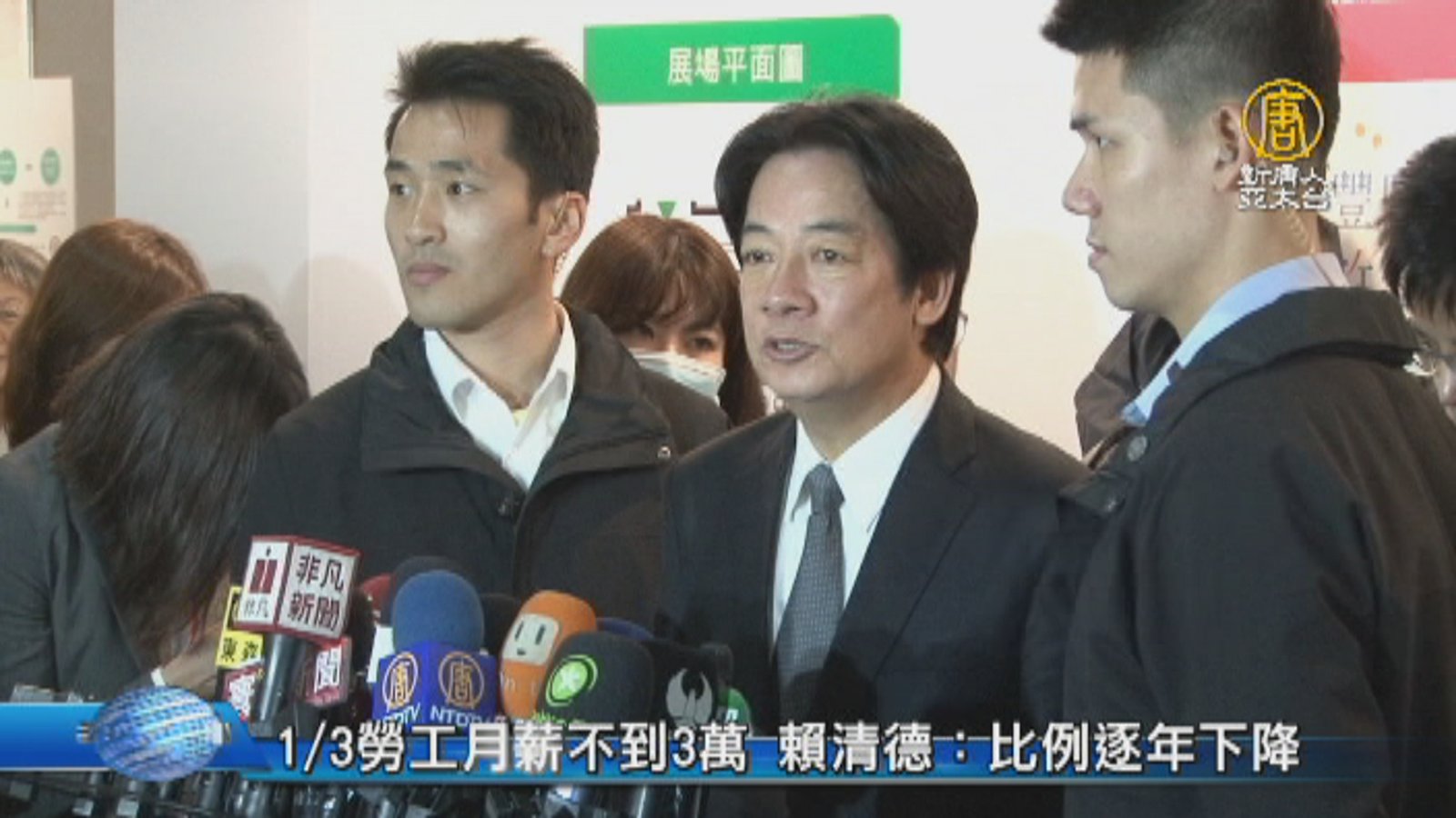 好,對於全台有將近34%的勞工,月薪不到3萬元。行政院長賴清德,今天(1日)上午回應,如果看趨勢,月薪3萬元以下勞工的比例,已經在逐年下降。中經院院長則建言,產業應該要朝,高附加價值發展。 //asset1.ntdtv.com.tw/public/uploads/assets/2017/12/01/2017-12-01-5a21518020298.mp4 低薪|主計總處|賴清德|經濟發展|功德院|吳中書|高附加價值2017-12-01 20:53:54