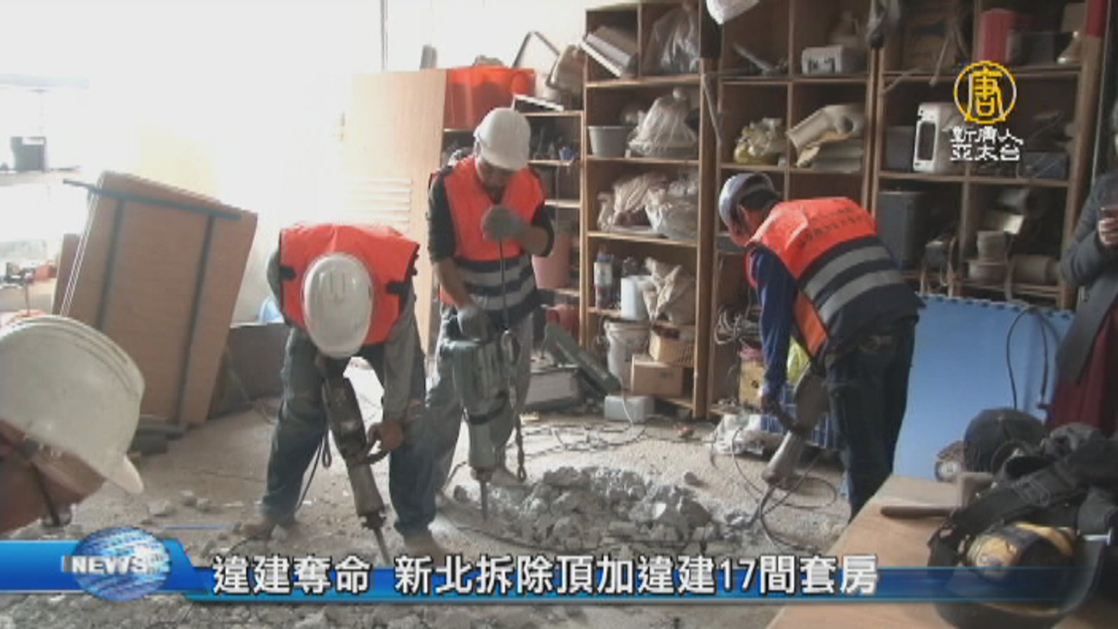 再來帶您關心,雙北違建出租公寓,半個月來發生兩起奪命火警,雙北政府都宣誓,要嚴肅面對違建問題。新北市從今天起,將全面執行頂加違建拆除,上午率先突襲,拆除中和景新街的頂加出租套房,工務處強調,違建拆除沒有終止日。 //asset3.ntdtv.com.tw/public/uploads/assets/2017/12/08/2017-12-08-5a2a91e4b96f2.mp4 拆除|違建|新北市|工務局2017-12-08 21:21:50