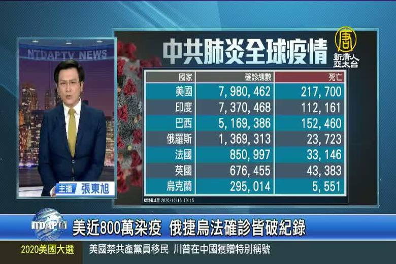 來關心中共肺炎疫情的最新情況,全球累計確診超過3千8百96萬人,1百09萬8千多人死亡。但中共、伊朗等國家,被認為嚴重低報數據。美國確診超過7百98萬例、死亡21萬7千多人。印度新增6萬3千多人染疫,累計超過7百37萬例。東歐疫情再度升溫,俄羅斯、烏克蘭、捷克,都再度刷新單日新增確診紀錄。法國新增確診也破紀錄,首度超過3萬例。英國單日確診逼近2萬人,倫敦、約克、艾塞克斯等地區疫情警報等級,將從「中等」提升到「高」級。歐洲的單日新增確診超越美國,讓歐洲遏止第2波疫情之戰到達臨界點。 //asset3.ntdtv.com.tw/public/uploads/assets/2020/10/16/2020-10-16-5f899167859b4.mp4 美國|歐洲|印度|西班牙|法國|英國|中共肺炎|武漢肺炎|疫情|防疫|中共病毒|新型冠狀病毒2020-10-16 20:25:26