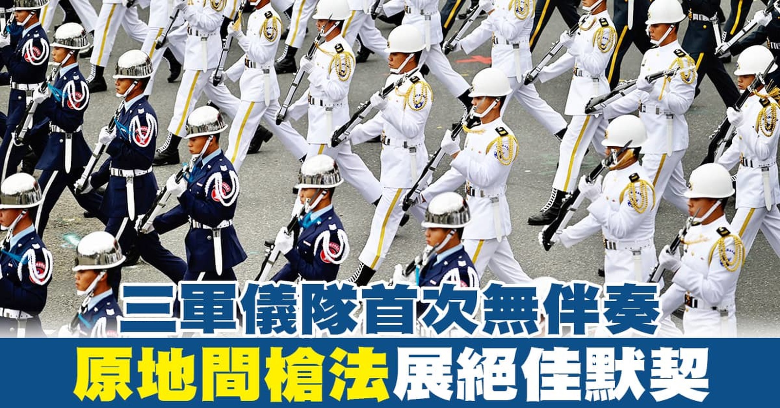 三軍儀隊首次無伴奏「原地間槍法」 展絕佳默契