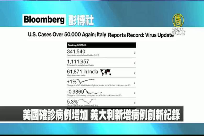 歡迎回來,來關心中共肺炎動態,目前全球公開數據,累計確診超過 4千零 7萬人,其中111萬人死亡。美國確診超過 815萬人,死亡 21萬9千多人。印度疫情放緩,但新增仍超過5萬例。歐洲疫情不斷升溫,俄羅斯單日新增近 1萬6千例,創俄羅斯單日確診新高。另外義大利新增 1萬1千多例,以及馬來西亞新增 871例,都創下該國單日新高。另外,中共、伊朗等國家,被認為嚴重低報數據。 //asset1.ntdtv.com.tw/public/uploads/assets/2020/10/19/2020-10-19-5f8d8897d0f01.mp4 美國|俄羅斯|歐洲|中共肺炎|武漢肺炎|疫情|防疫|中共病毒2020-10-19 20:37:17