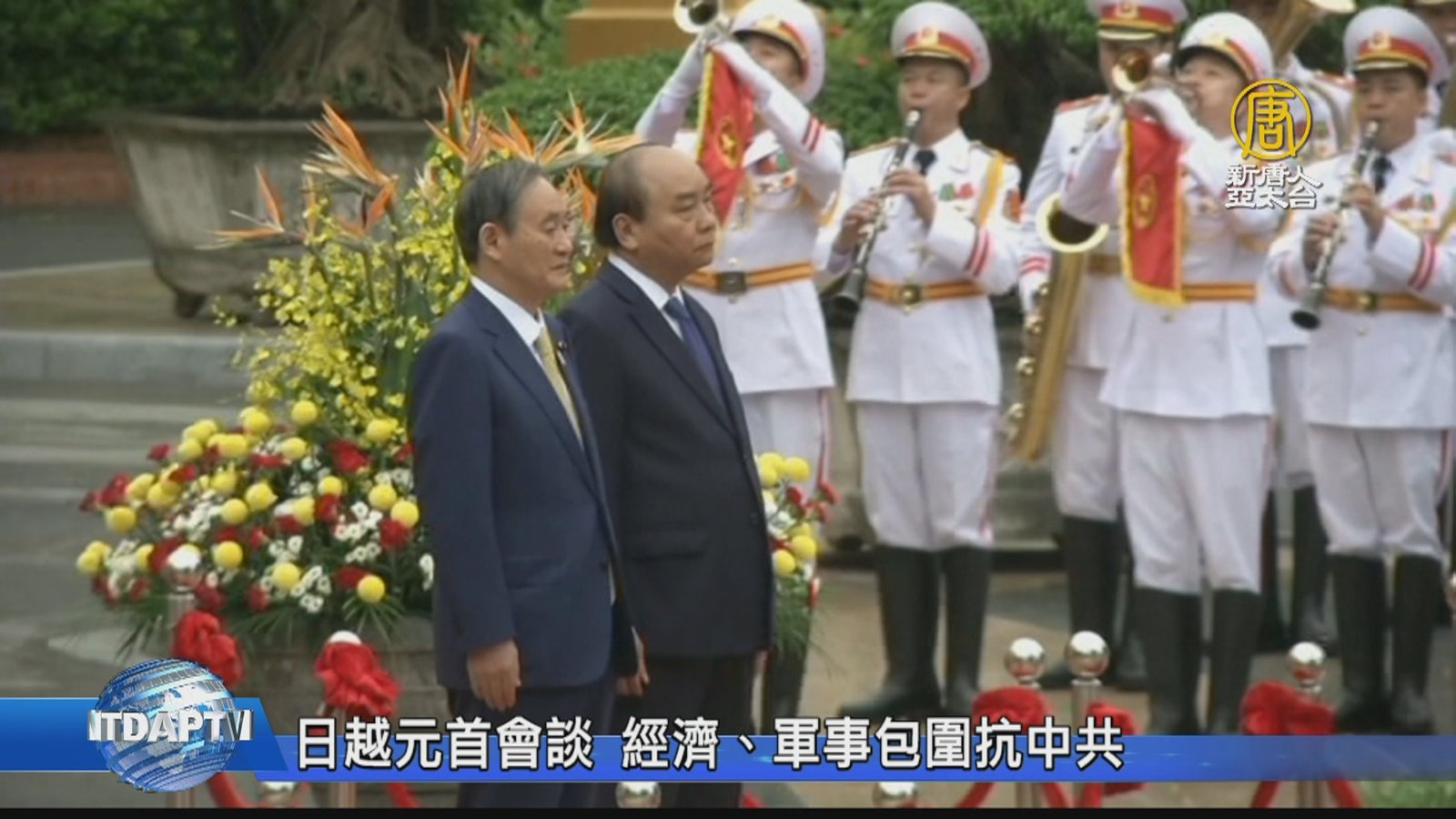 日本首相菅義偉首次出訪,第一站來到越南,上午與越南總理舉行雙邊峰會。雙方達成多項領域合作共識,包括將開放商務往來航班深化經濟合作,降低日本對紅色供應鏈的依賴,而在軍事上,日本轉讓越南多項技術,菅義偉在當地大學演講時,也暗批中共在南海建立軍事據點,雙方防務合作向前一大步,東南亞包圍對抗中共的情勢,越趨明顯。 //asset2.ntdtv.com.tw/public/uploads/assets/2020/10/19/2020-10-19-5f8d8fbd74939.mp4 菅義偉|阮春福|日本|越南|金蘭灣|國際法|聯合國海洋法公約|九段線|南海|軍演2020-10-19 20:53:33