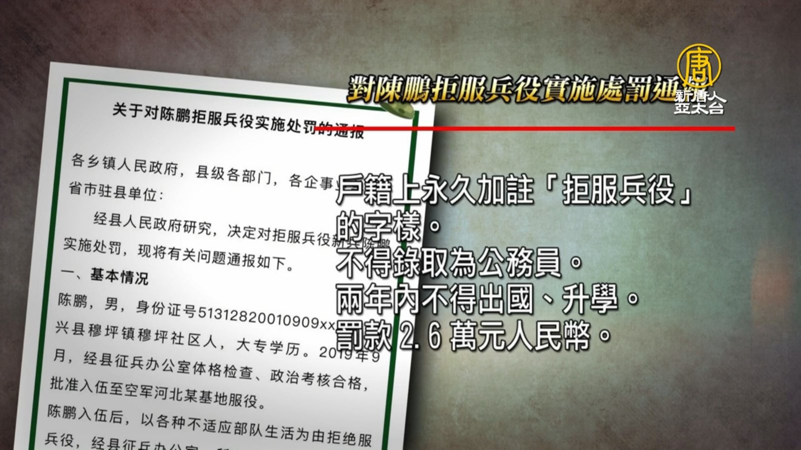 中國青年拒服兵役 竟遭嚴懲引關注