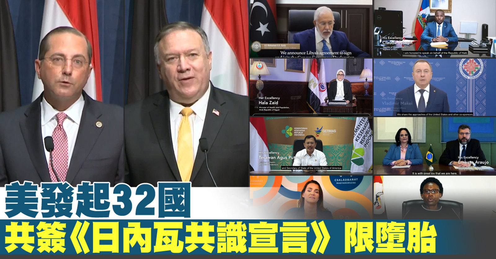 再來看到,週四(10月22日),32個國家共同簽署一項旨在保護生命、限制墮胎的《日內瓦共識宣言》。美國國務卿蓬佩奧,和衛生部長阿薩爾,共同出席了線上的簽署儀式。 //asset3.ntdtv.com.tw/public/uploads/assets/2020/10/23/2020-10-23-5f92dc840280b.mp4 日內瓦共識宣言|保護生命|墮胎|美國國務卿|蓬佩奧2020-10-23 21:35:35