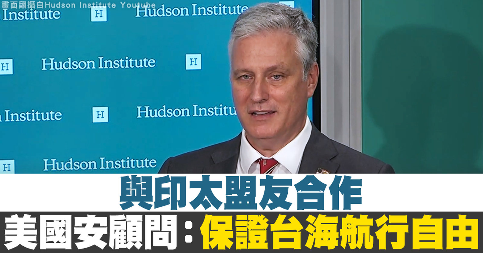與印太盟友合作 美國安顧問:保證台海航行自由