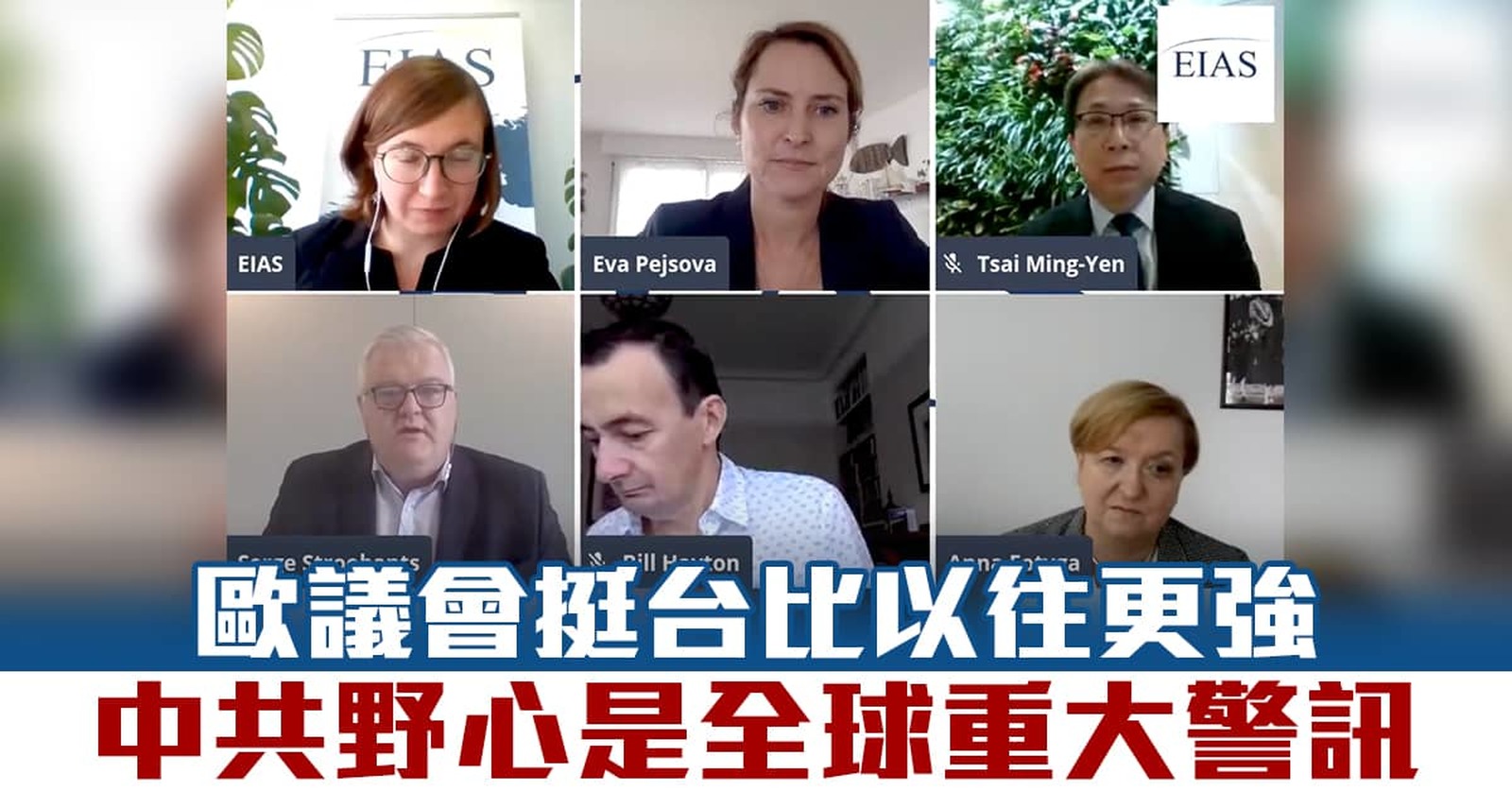 歐盟亞洲事務研究中心(EIAS)28日在布魯塞爾舉行「香港實施國安法後對於臺海及南海安全情勢影響」視訊研討會,會上歐洲議會議員們示警,在中共威脅漸增下,歐洲議會對臺灣支持力量比以往更強,但今年「港版國安法」施行後,中共野心昭然若揭,對臺灣以致全球已構成重大警訊。 //asset2.ntdtv.com.tw/public/uploads/assets/2020/10/29/2020-10-29-5f9abf98f2eb3.mp4 2020-10-30 18:32:15