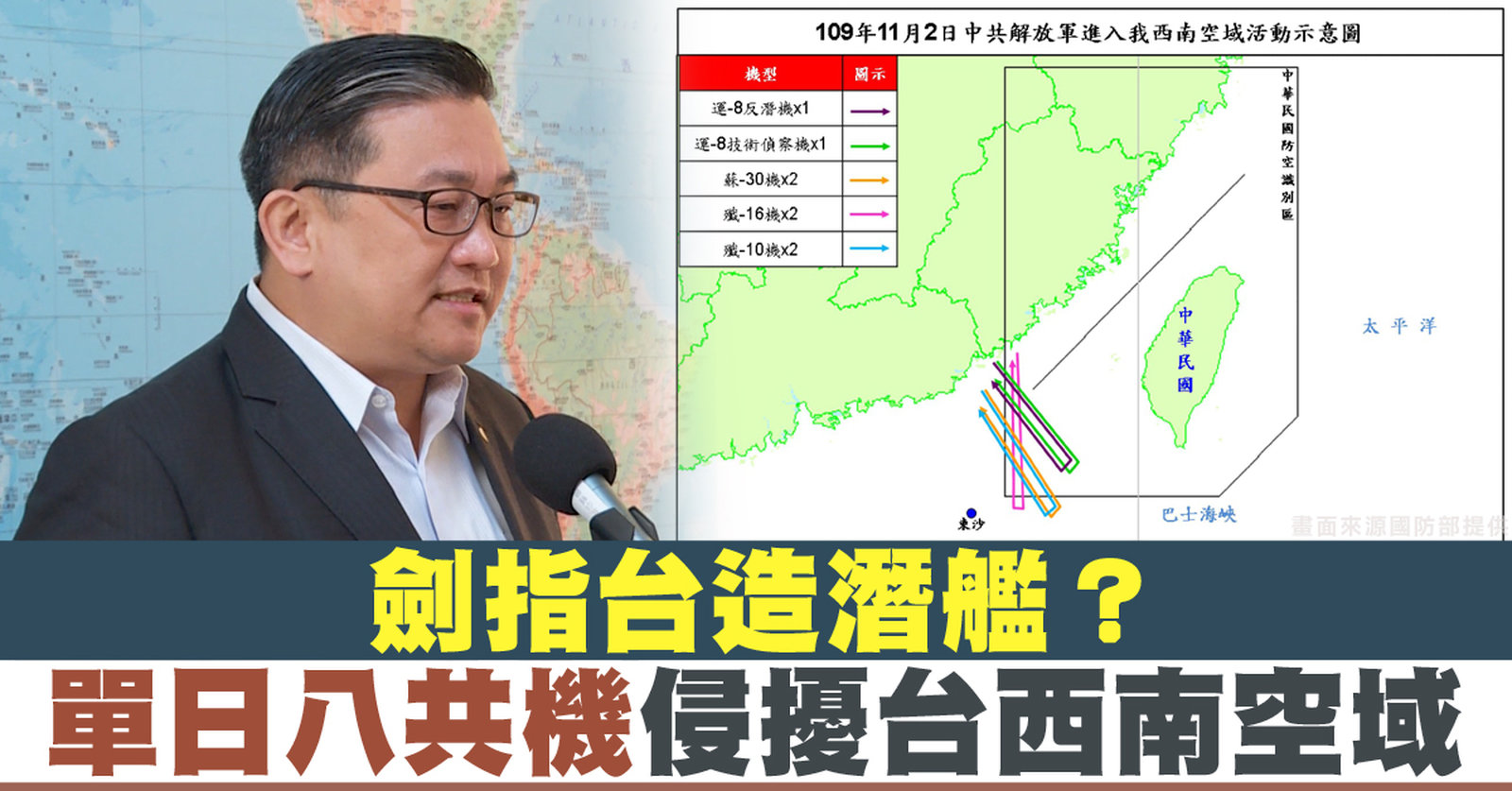 劍指台造潛艦?單日八共機侵擾台西南空域