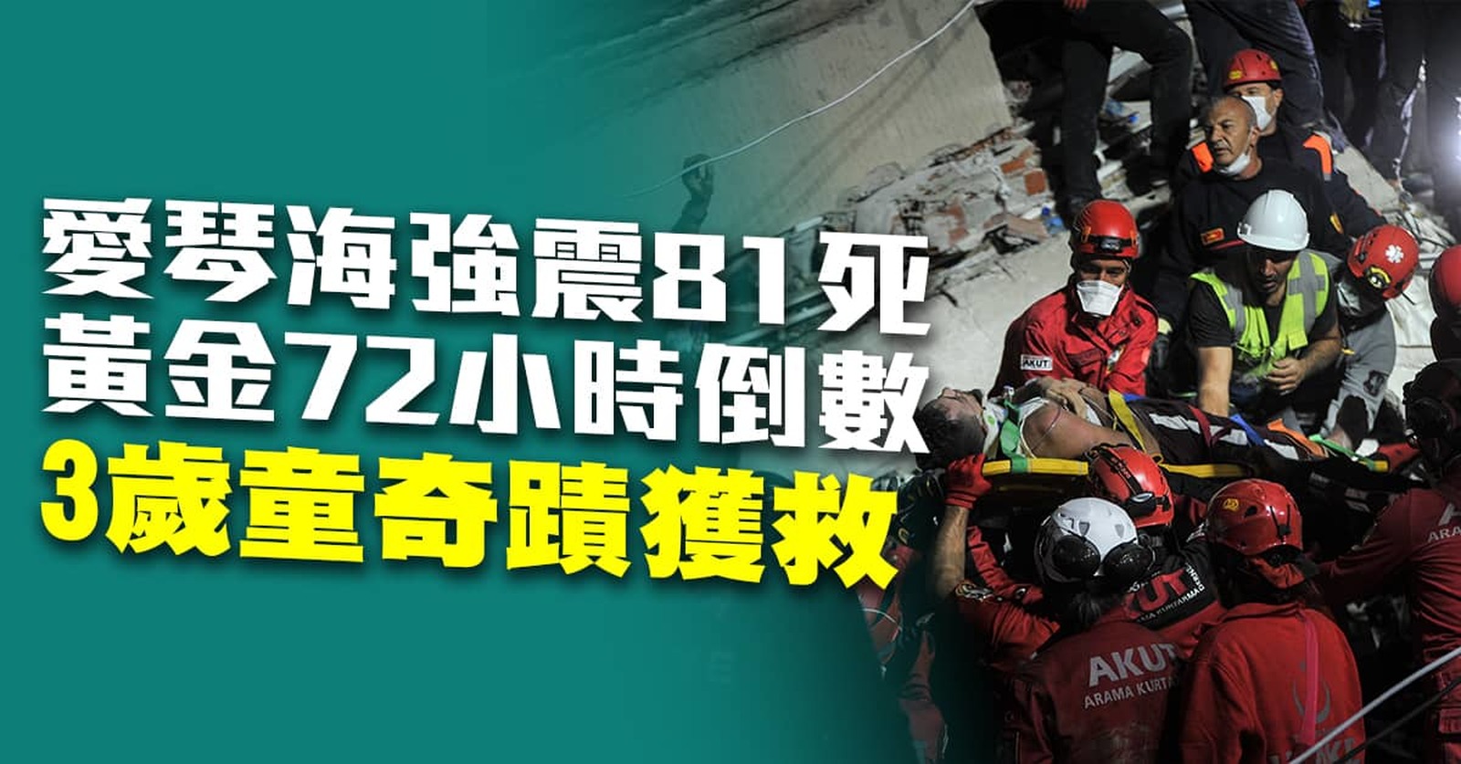 愛琴海強震81死黃金72小時倒數 3歲童奇蹟獲救