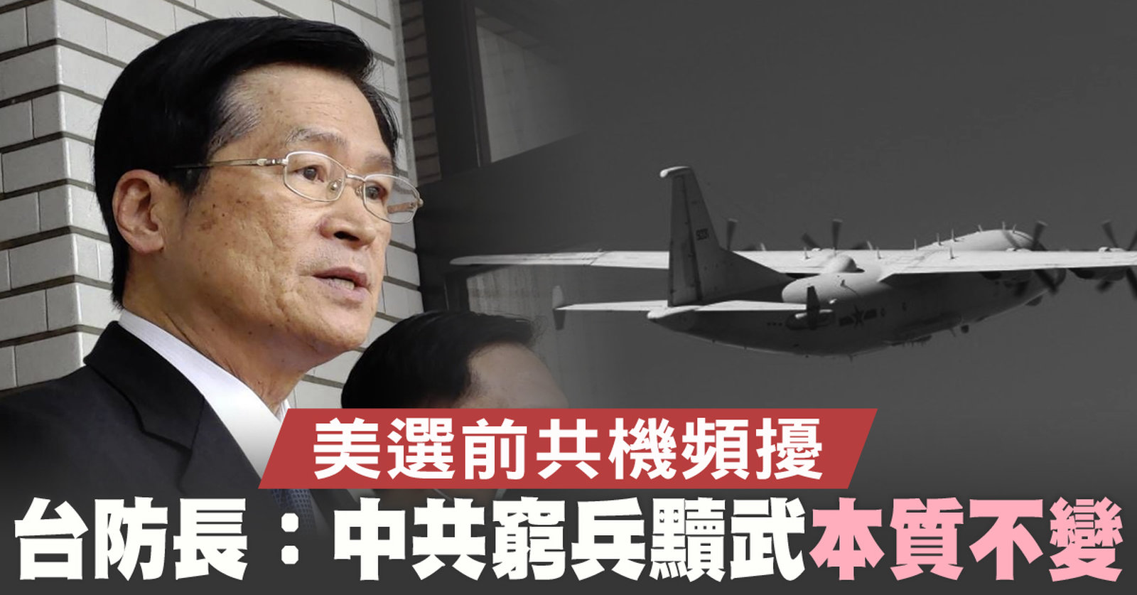 美選前共機頻擾 台防長:中共窮兵黷武本質不變