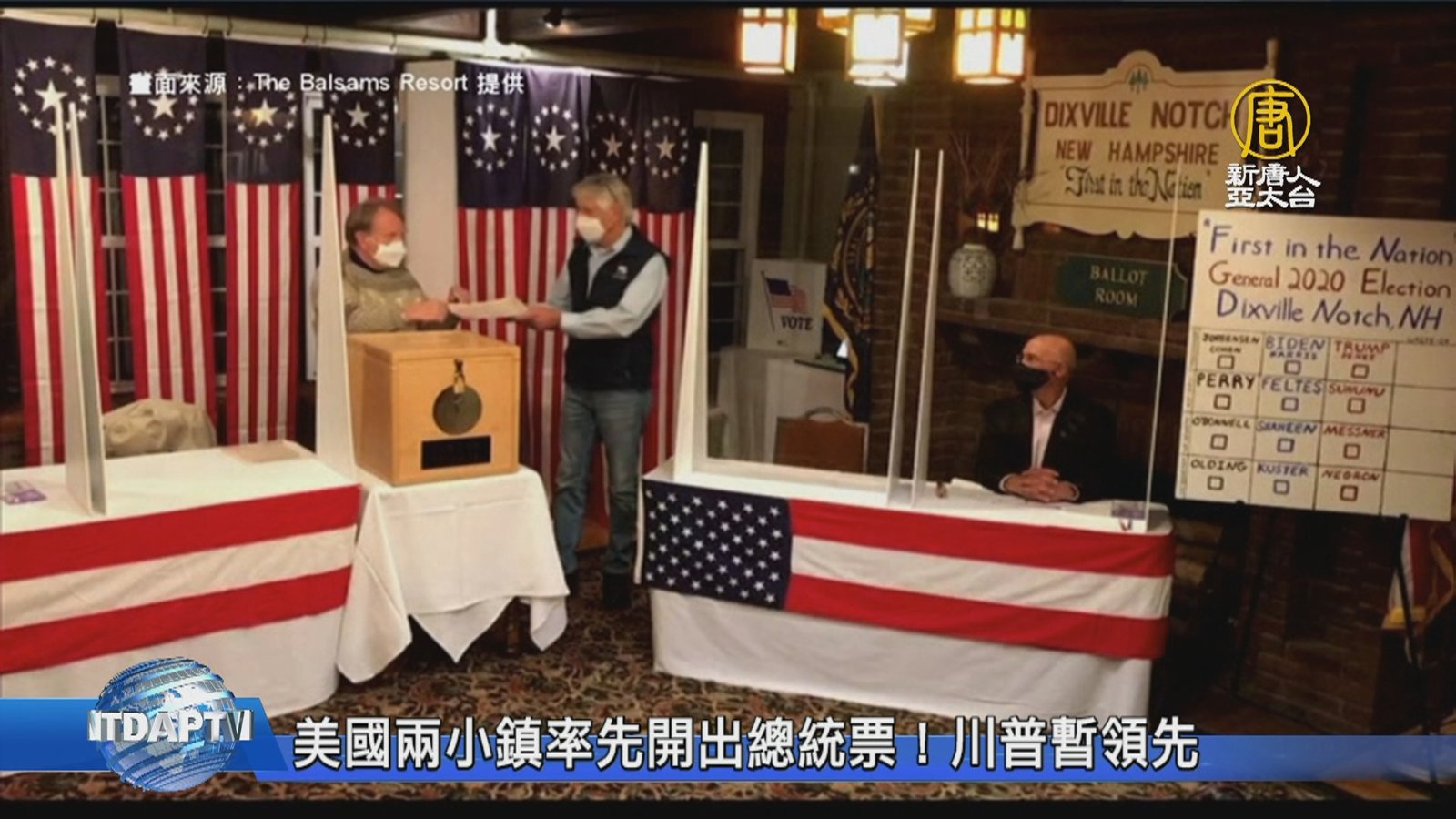 頭條新聞,馬上帶您聚焦,全球矚目的美國總統大選,今天(3日)登場,由新罕布什爾州的兩個小鎮率先開票,目前川普票數16票、拜登10票,由川普取得領先。根據美國當地選舉法規,人數不到100位的小鎮,午夜一過就可以開始投票,所以這個只有12位居民,位在美國與加拿大邊境的小鎮迪克斯維爾,成為全美第一個宣布投票結果的地方,根據僅有五位選民的小鎮開票結果,拜登5票全拿,川普零票。不過另外一座小鎮米爾斯菲,川普則獲得16票,拜登5票。 //asset1.ntdtv.com.tw/public/uploads/assets/2020/11/03/2020-11-03-5fa14972bf54a.mp4 2020美國大選|川普|開票|拜登2020-11-03 20:53:19
