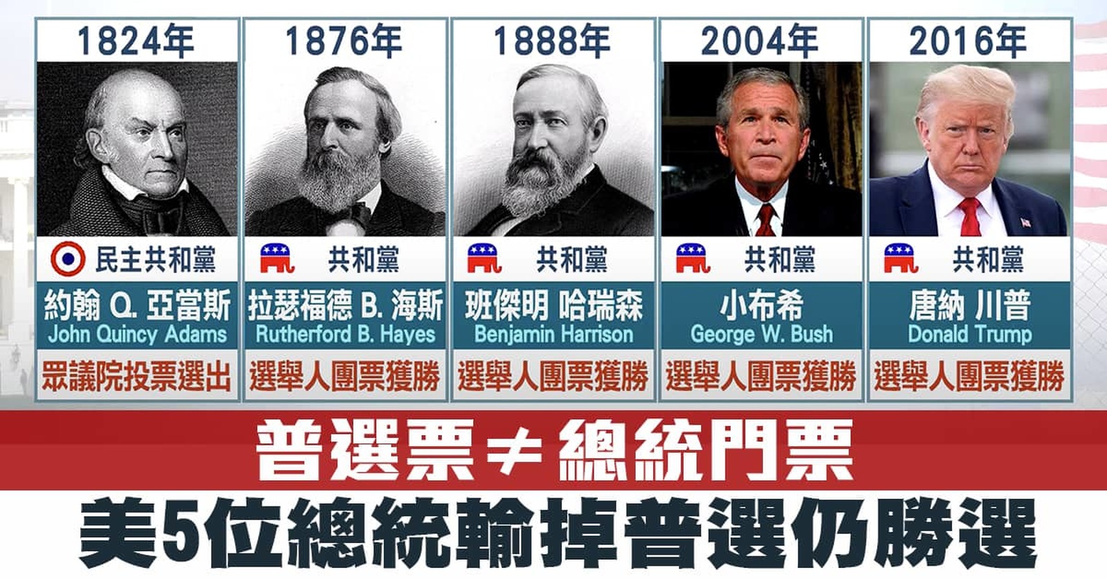 普選票≠總統門票 美5位總統輸掉普選仍勝選