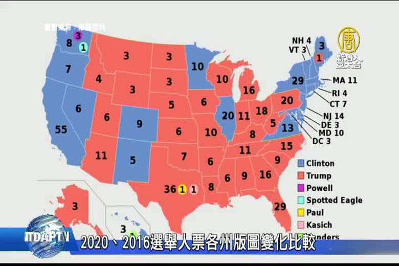好,川普這次選的比預期要好上許多,甚至超越2016年的自己,使得選票版圖幾乎跟2016年一樣,2016年,川普與當時的民主黨總統候選人希拉蕊,競逐白宮寶座。川普當時以306張選舉人票擊敗希拉蕊。當時各州的政治版圖,對比今年已經開票確定的州,基本上相符合。不過,川普2016年拿下的亞利桑那州,目前由拜登暫時領先;搖擺的威斯康辛州,拜登微幅領先。 //asset1.ntdtv.com.tw/public/uploads/assets/2020/11/04/2020-11-04-5fa29b5d9d1b7.mp4 2020美國大選|川普2020-11-04 20:14:37