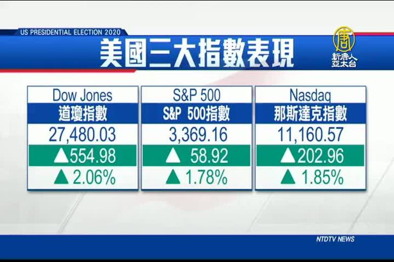 好,美國大選目前持續開票,兩黨總統候選人各自表態有信心勝選。搖擺州選情激烈、郵寄選票計票慢又出狀況,各家媒體對開票結果看法南轅北轍。外界憂心大選結果恐怕延宕,金融市場也跟著選情上下搖擺,目前截至台北傍晚時間,美國三大指數期貨呈現走揚,道瓊指數期貨上揚2.06%,上漲554點,來到27,480.03點,標普S&P500指數期貨,也是走升1.78%,那斯達克指數期貨方面,上漲202.96點,來到11,160.57點。 //asset2.ntdtv.com.tw/public/uploads/assets/2020/11/04/2020-11-04-5fa29c2d035c1.mp4 2020美國大選|選舉舞弊|選舉詐欺|選舉訴訟|川普|拜登|大選|美股|三大指數2020-11-13 22:59:36