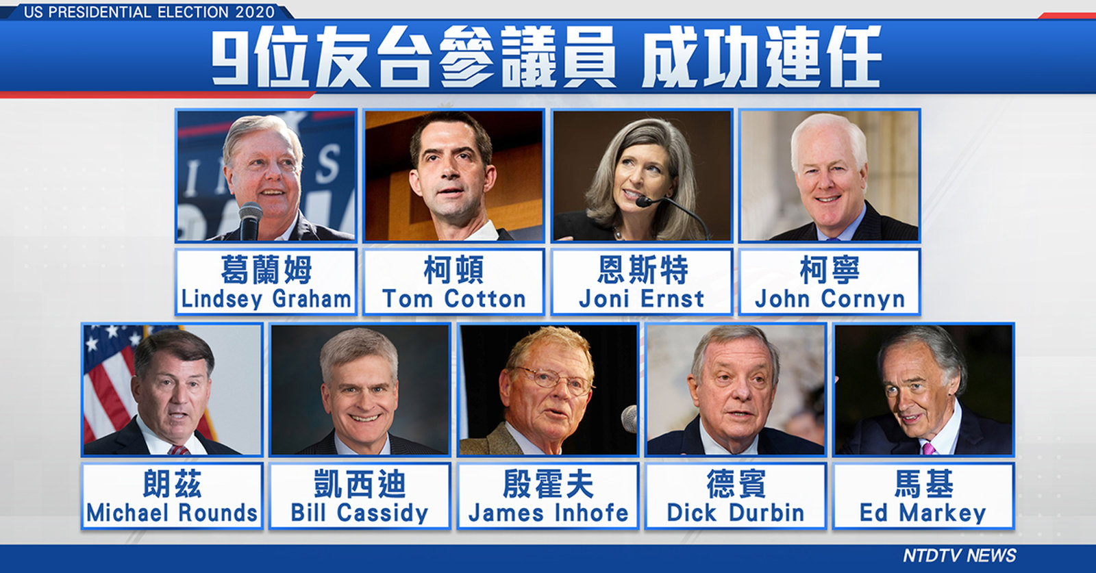 美國國會改選,參議院的選舉結果陸續出爐,截至美東時間4日凌晨,參議院100個席次中,共和黨以47席些微領先民主黨的46席,其中,改選的35席中,有9位「台灣連線」小組的議員順利連任。 //asset3.ntdtv.com.tw/public/uploads/assets/2020/11/05/2020-11-05-5fa3dc3e0e663.mp4 2020美國大選|參議院|台灣|共和黨|民主黨2020-11-04 20:25:06