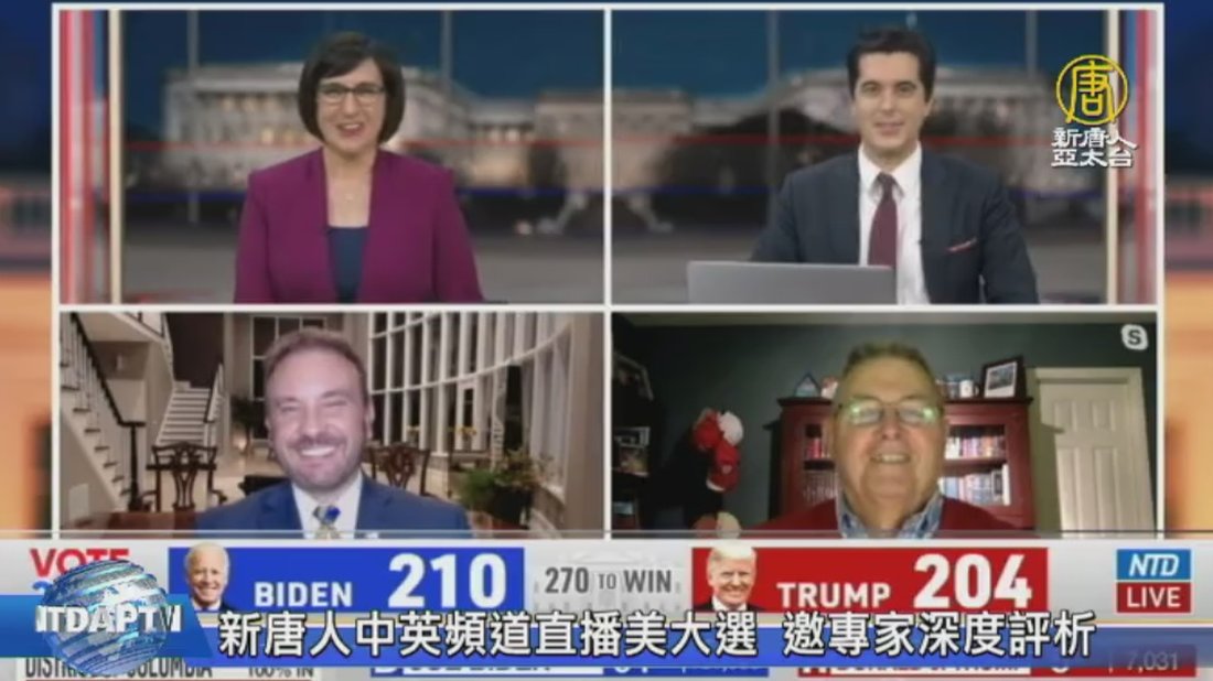 美國總統大選持續開票,今天(4號)下午台灣學者在座談分析開票結果,認為川普贏面較大;如果成功連任,原因是疫情爆發前的經濟政績。 //asset1.ntdtv.com.tw/public/uploads/assets/2020/11/04/2020-11-04-5fa29c4f8cd7f.mp4 2020美國大選|川普|搖擺州|經濟|股市2020-11-04 20:17:32
