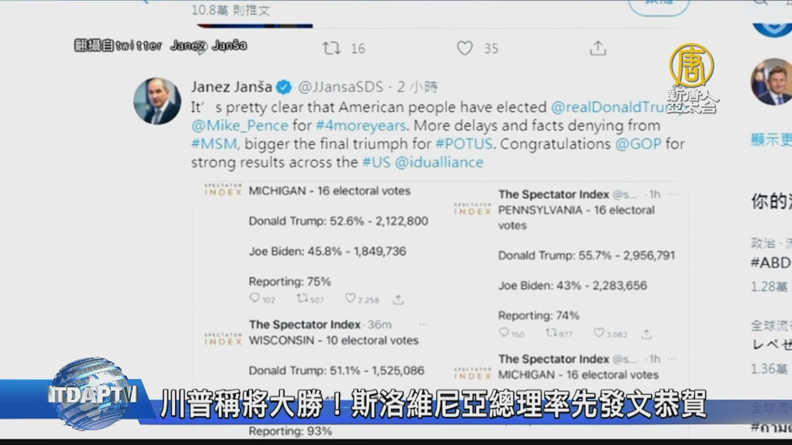川普稱將大勝!斯洛維尼亞總理率先發文恭賀