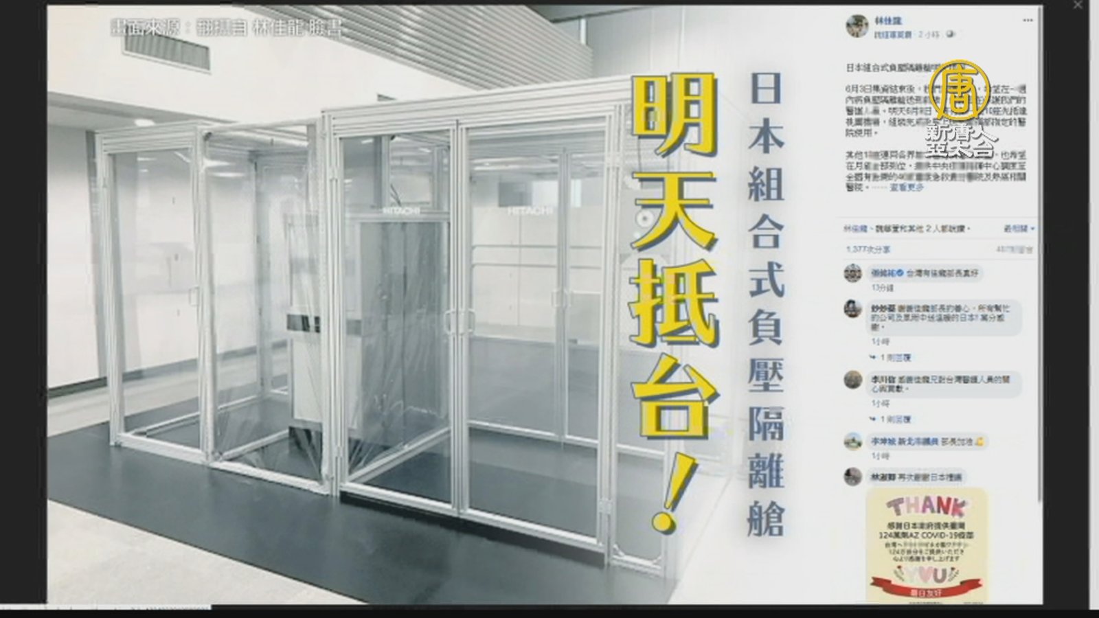 日本禮讓台灣「負壓隔離艙」首批10座6月10日將抵台