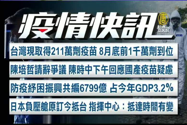 新聞一開始,先來鎖定台灣疫情,台灣今天(8日)新增219例本土確診個案、22人死亡。指揮官陳時中指出,整體陽性率持平往下,是比較好的現象,但也強調,沒有放鬆的本錢。另外,儘管國外疫苗採購遇到外力干擾,陳時中表示,政府會努力爭取,希望在8月底前,1千萬劑疫苗能到位。 //asset3.ntdtv.com.tw/public/uploads/assets/2021/06/08/2021-06-08-60bf5f608466a.mp4 疫苗|端午連假|居家快篩|中共肺炎|武漢肺炎|疫情|防疫|中共病毒|新型冠狀病毒2021-06-08 20:52:40
