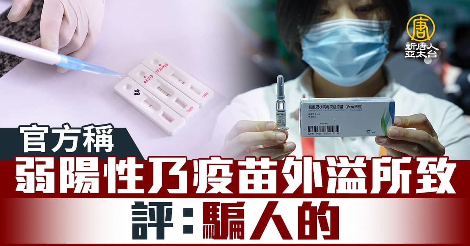 官方稱弱陽性乃疫苗外溢所致 評:騙人的