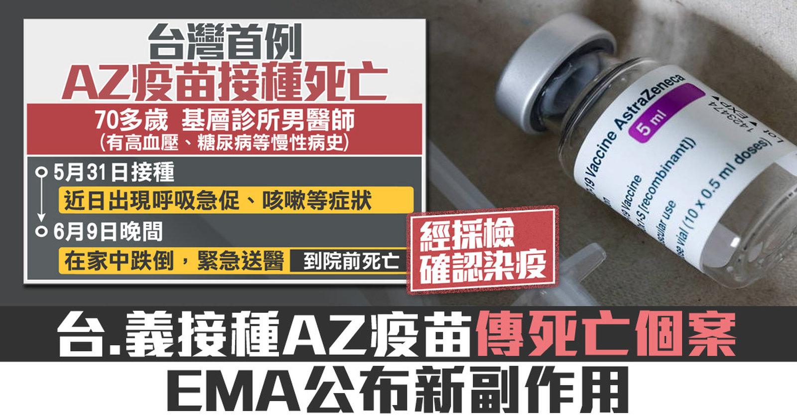 台.義接種AZ疫苗傳死亡 EMA公布新副作用